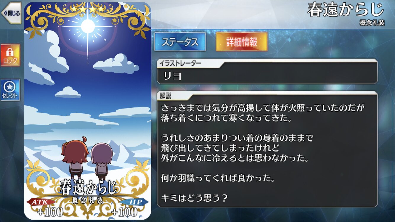 さらにスキルで確率とはいえスタンもあって、なかなかハイスペック。容姿はみての通り超かわいくて霊衣もあるから着せ替えで気分も変えられるぞおすすめだぞ>>37