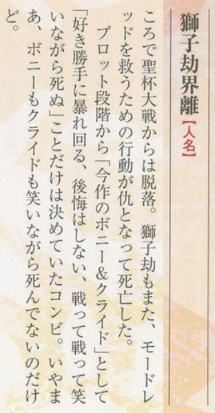 一巻より前に出たタイプムーンエースのおまけのプロローグ小説は獅子GOさんと玲霞さんの話だったのよ>>64