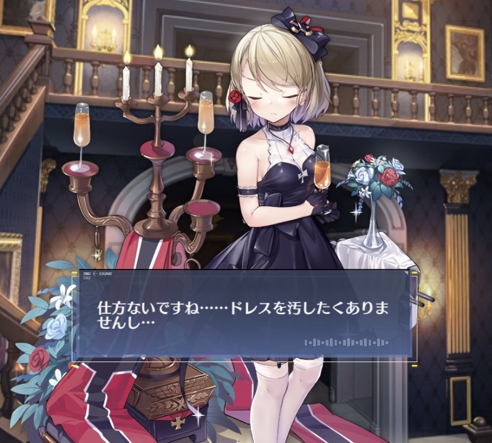 「普段はみんなでワイワイやるパーティーが好きだけど、たまにはこういう格式高いパーティーがあってもいいよね~大好きな指揮官とも二人っきりなれる しさ……あたし、ちょっと酔ってるのかにゃ…スヤスヤ……ふぅ……」
