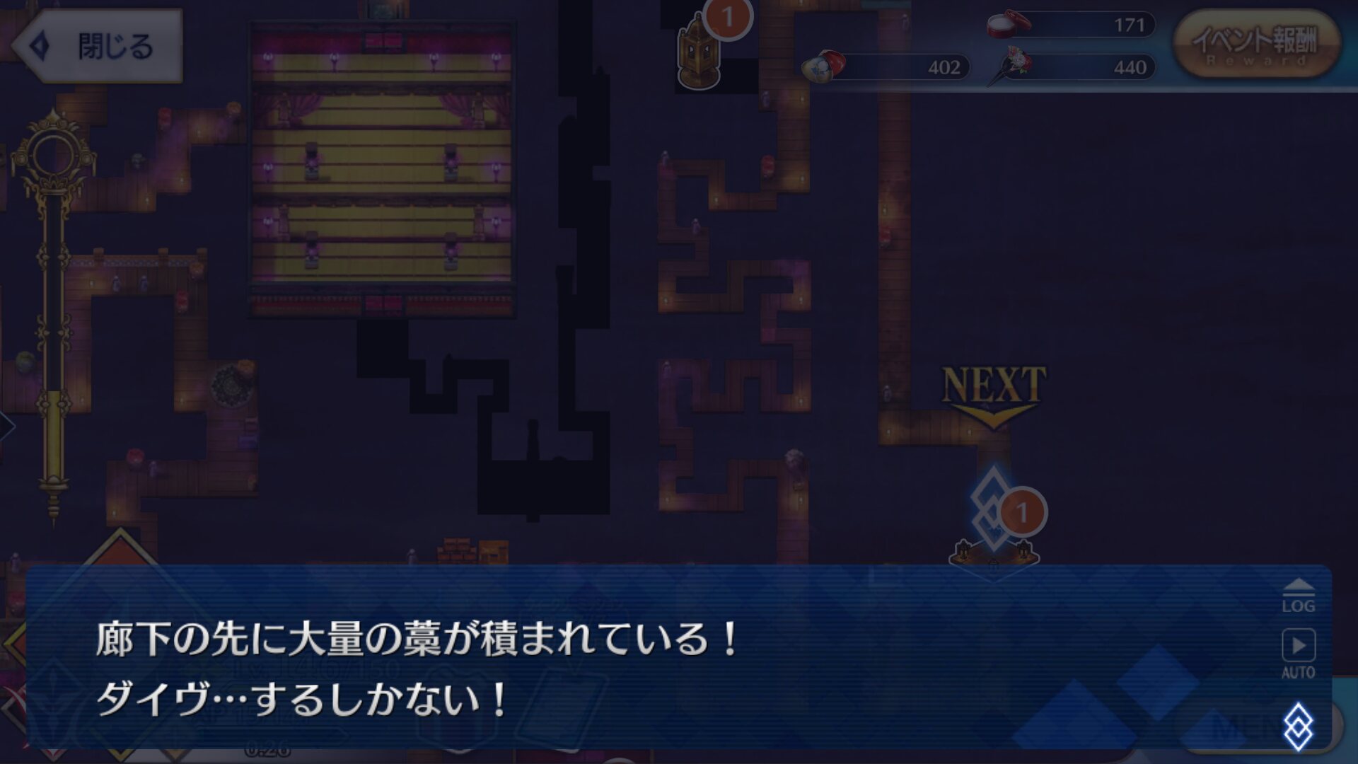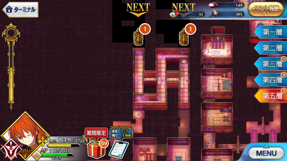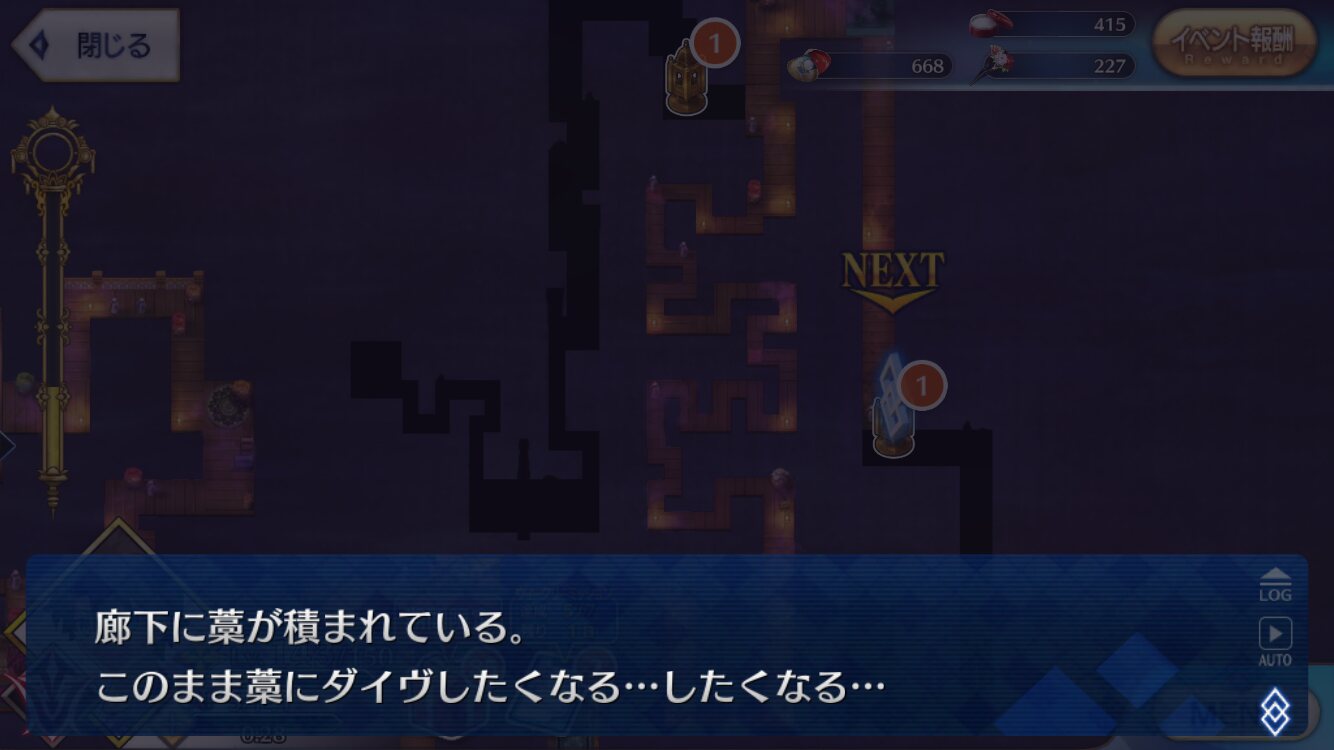 後二回もとい二日でメインシナリオは終わっちゃうのかな。最深部はシナリオ多めなんだろうか。