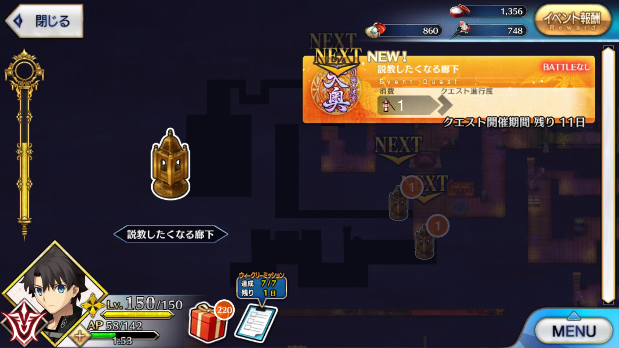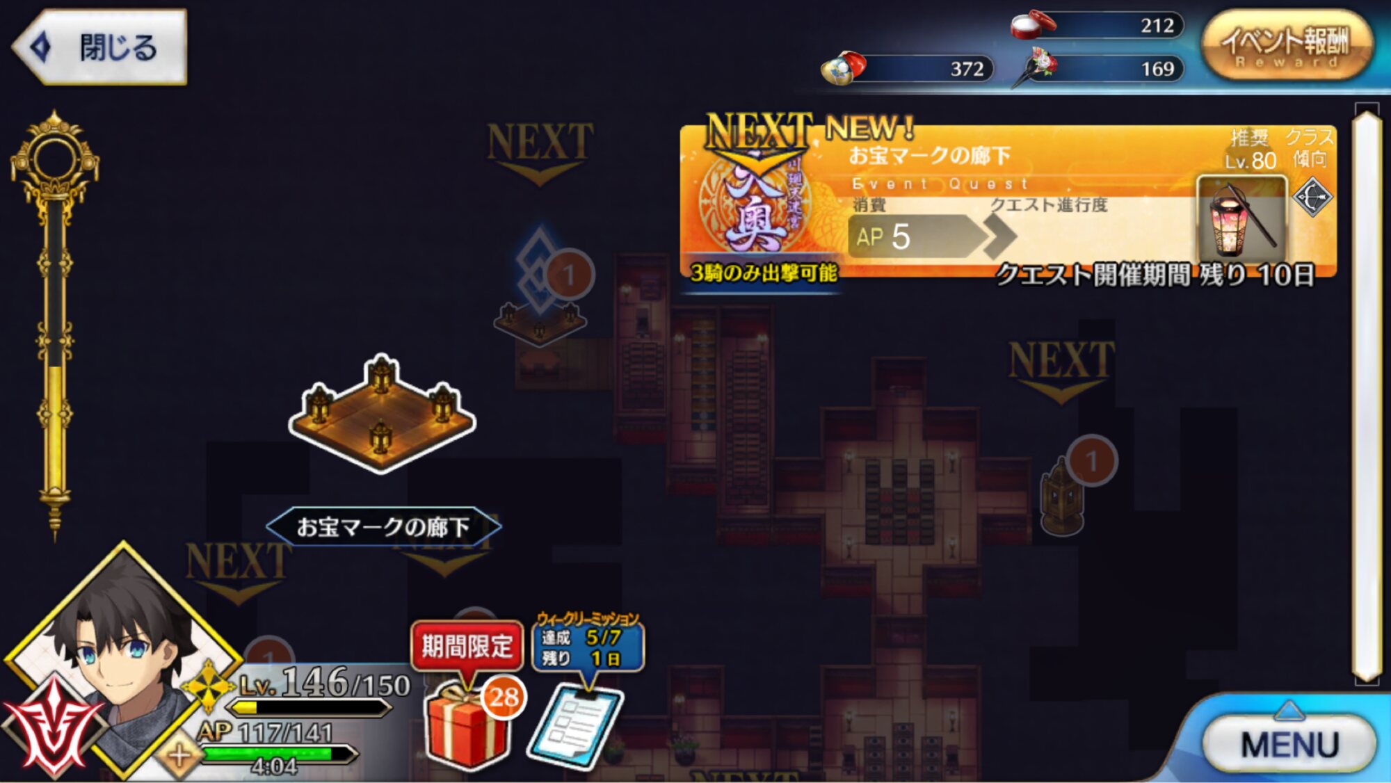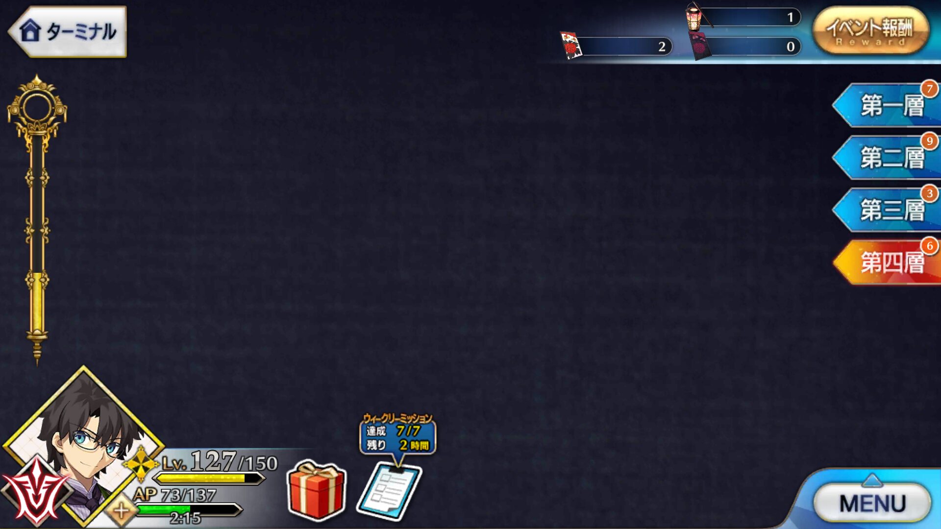 後二回もとい二日でメインシナリオは終わっちゃうのかな。最深部はシナリオ多めなんだろうか。