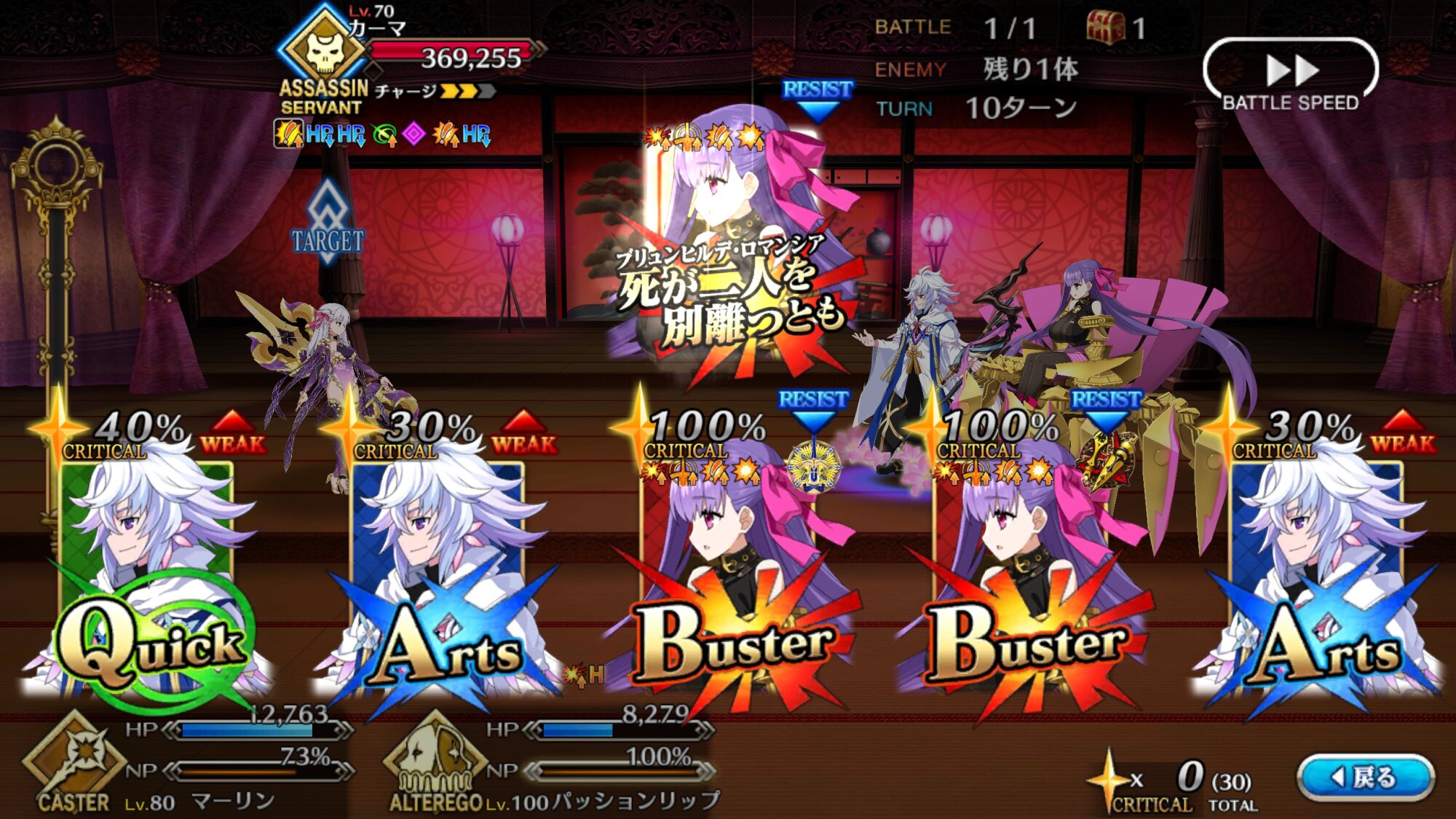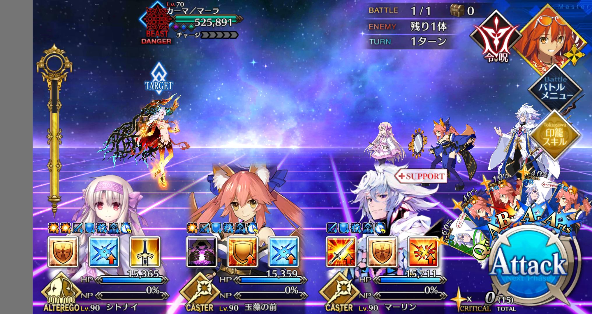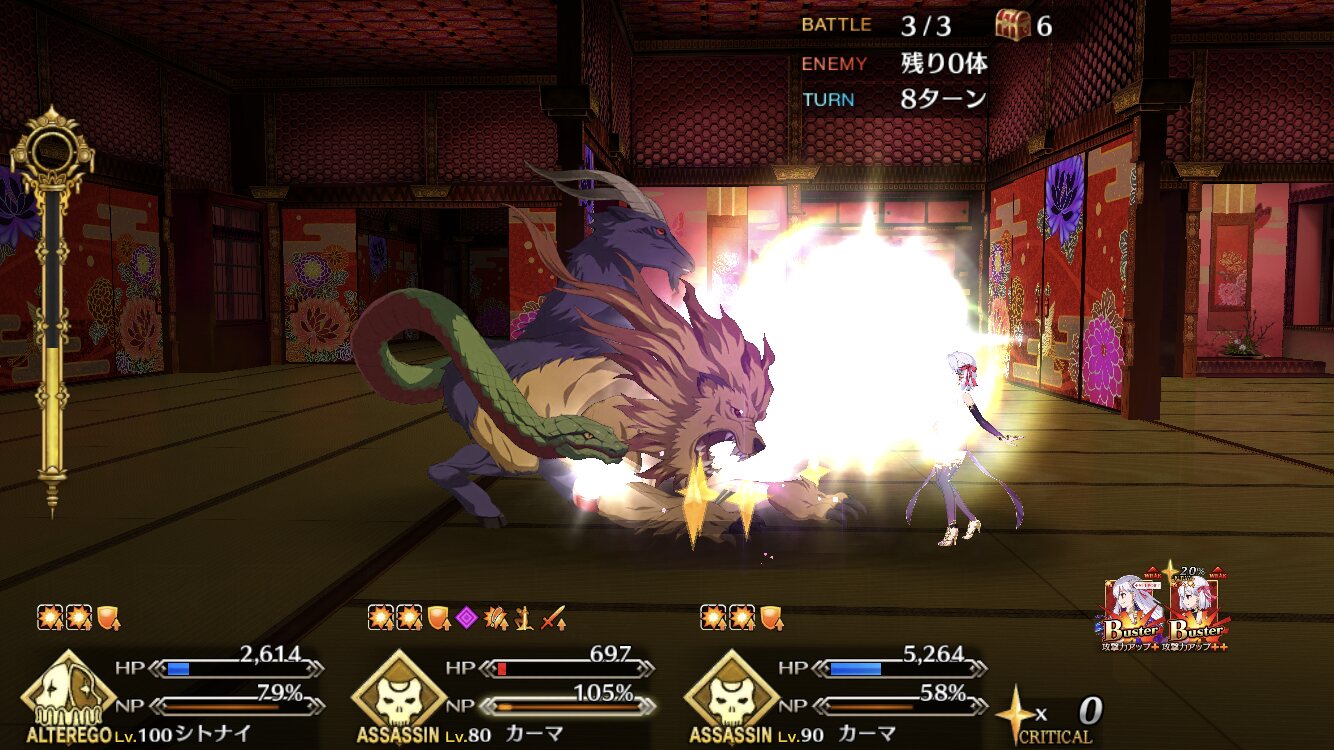 キャスターのとこもカーマちゃんさまでやってるけど特攻と宝具火力とクリティカルが合わさってわりと余裕で突破できちゃうという>>936
