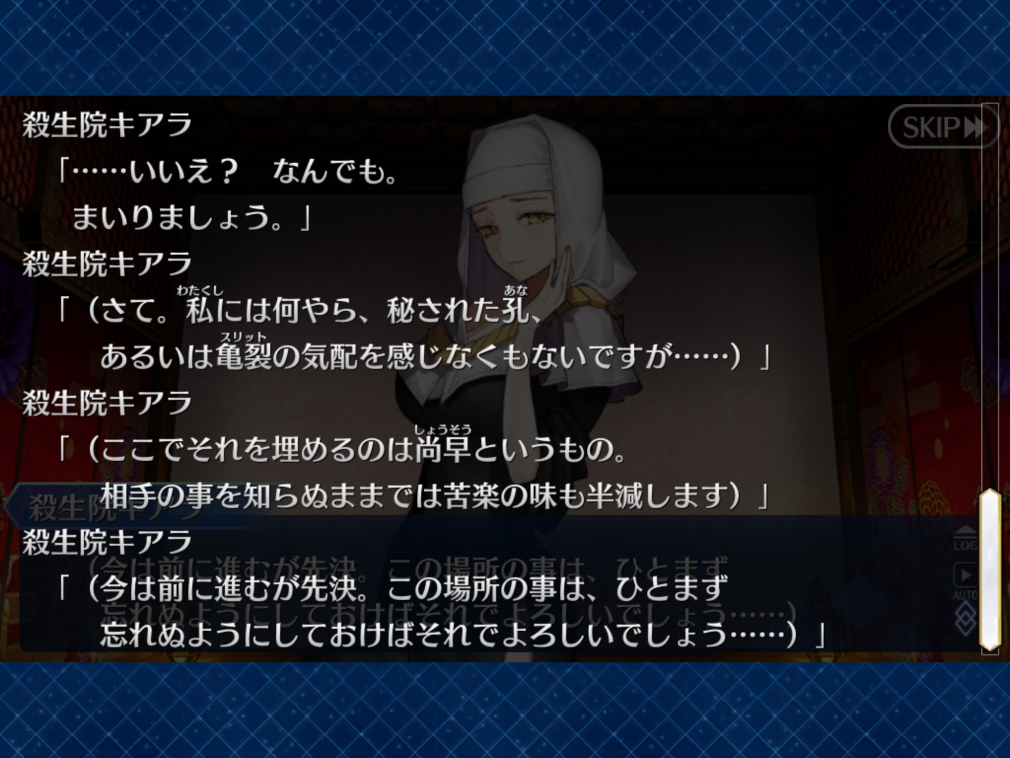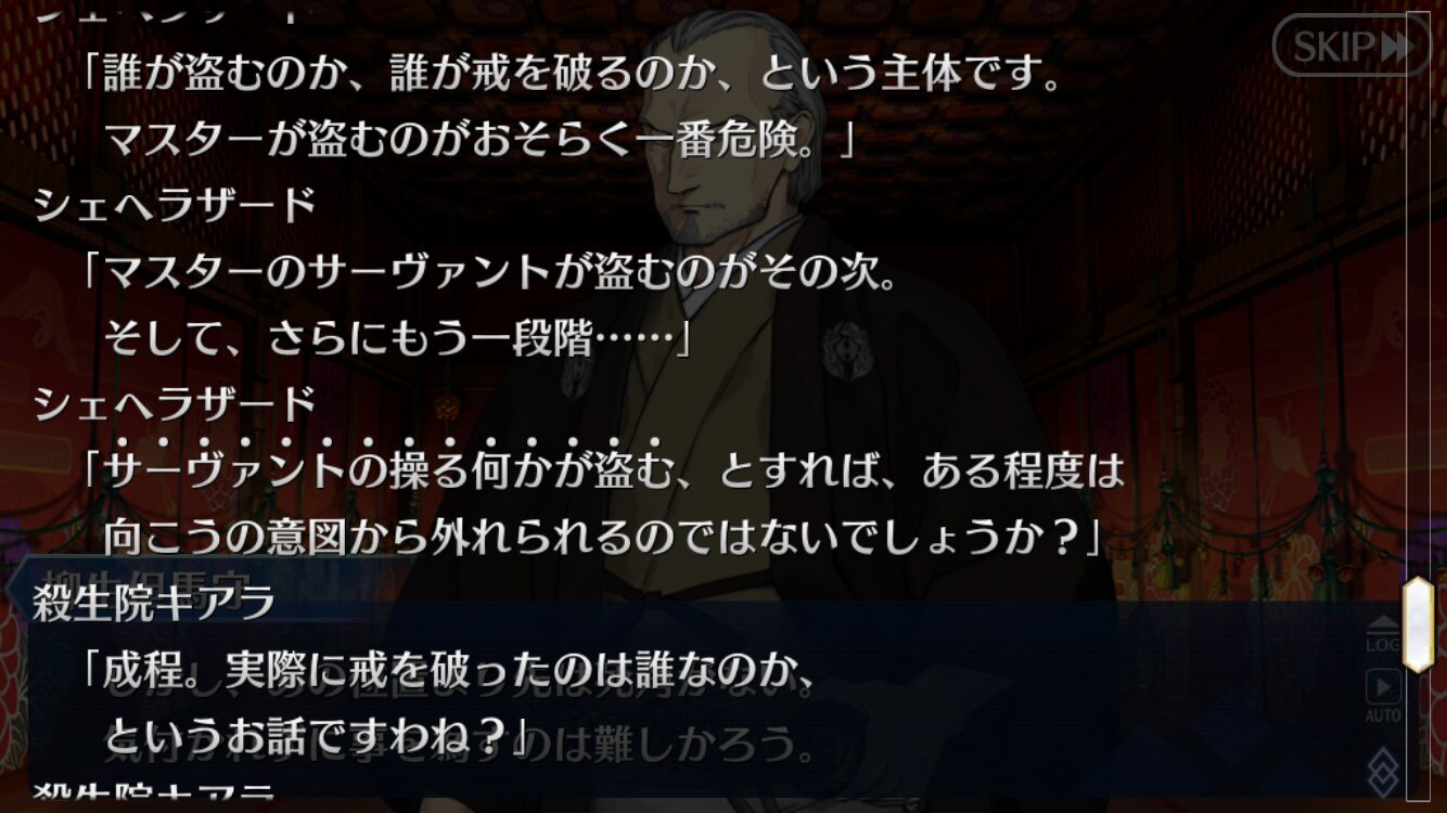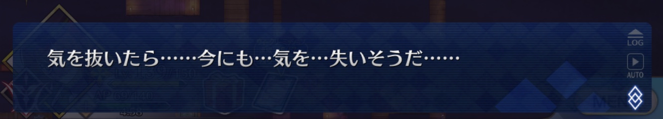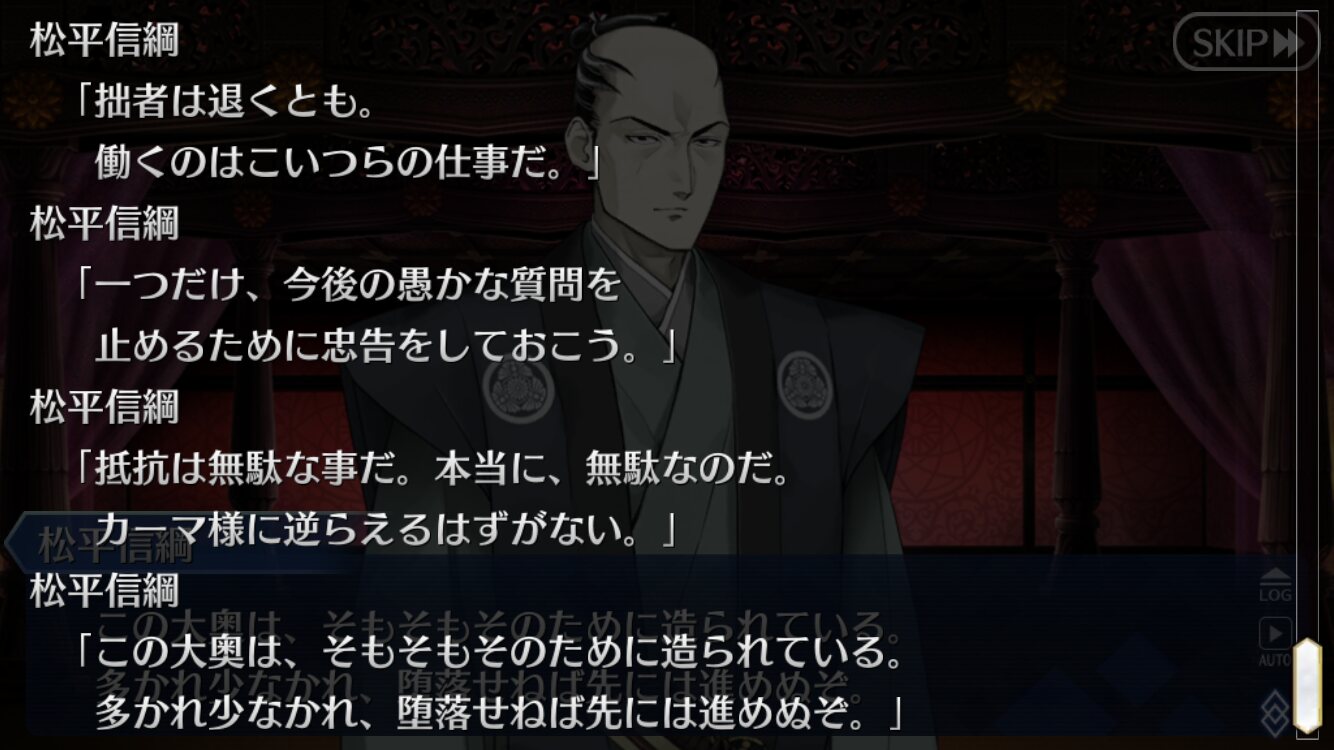 何か呪いでも抱えているのかなと思った。カルタ落としたり、宗矩の同化を遅くしたりと水面下で工作していそう。シナリオでぐだが酒を飲もうとする描写あったけどさ