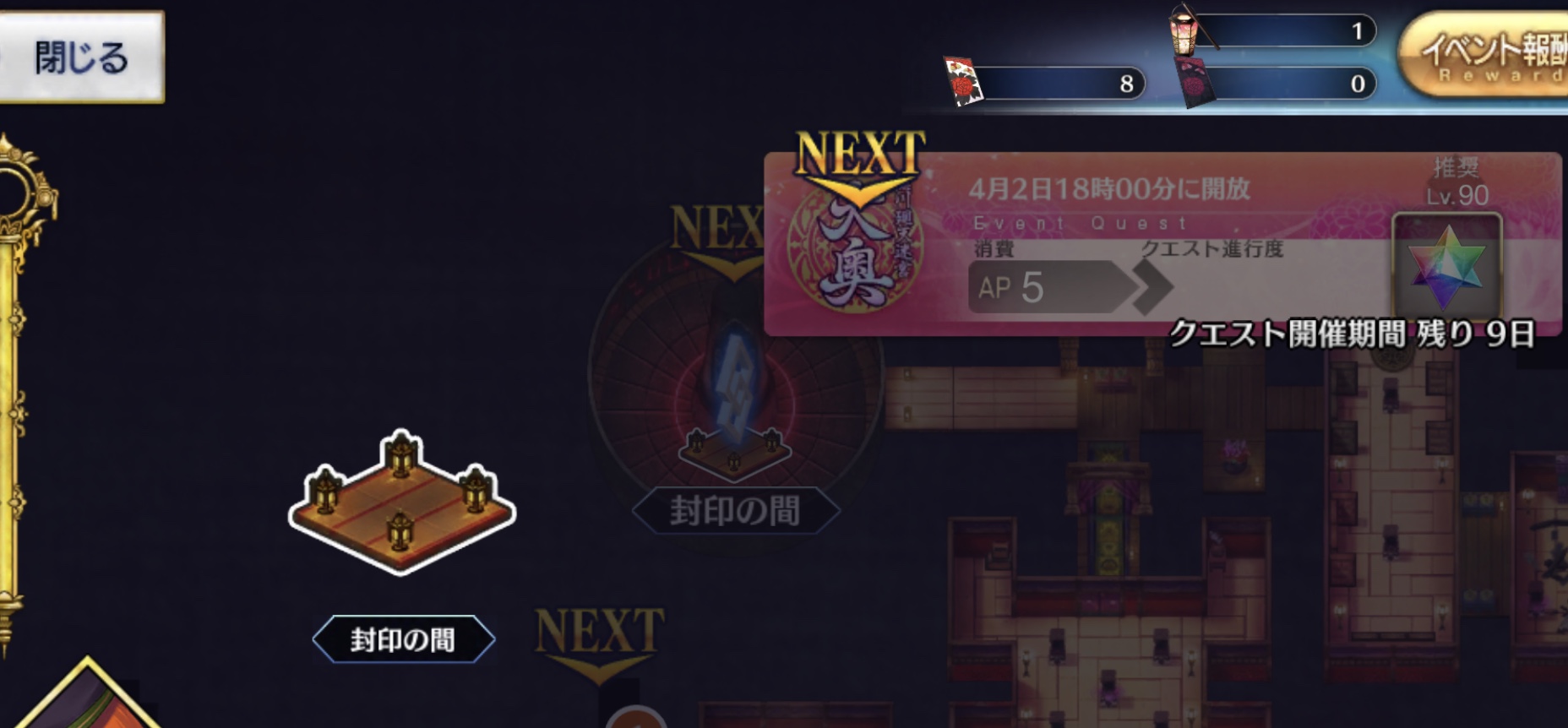 白い壁の先の部屋まで行けて、その解放は4月2日だよ。