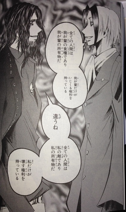 両者共に人間を下等生物と見下してるけど、「だからこそ食糧として保護する必要があり、またその枠を越えるかもしれない」と期待するネウロと「生存競争に則り自分たちに一方的に滅ぼされるためにいる」としか考えてないシックス。