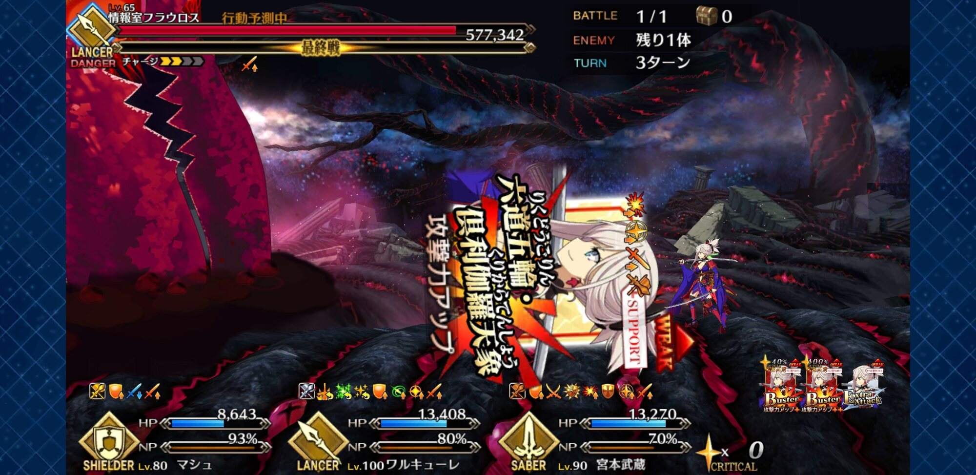ブチ切れぐっちゃんと韓信ロード以外全ての敵を殴り倒した2部3章での我が宝具1のキャスニキ>>976