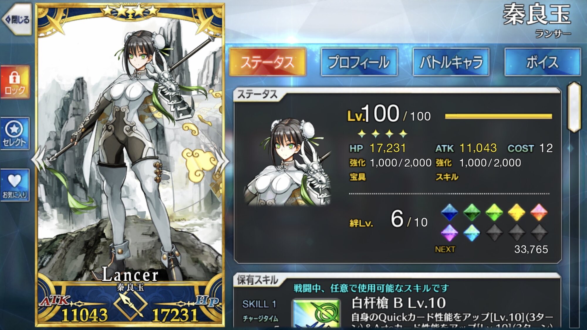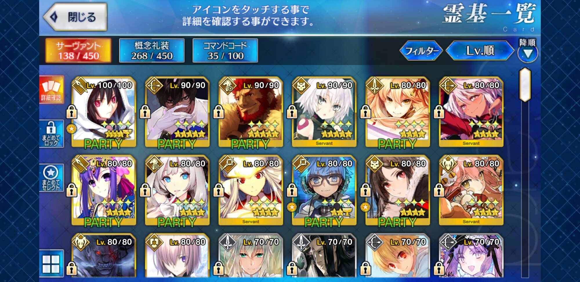レベル100騎マルタさん。わんぱくキアラチャレンジの時にようやくバサクレスのキズナレベルが残り1でマックスになるとこまできたわ