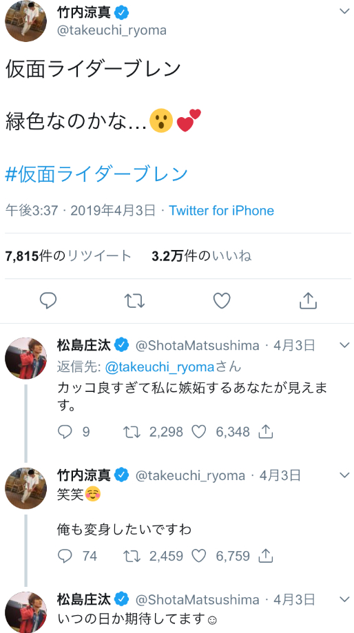 なんかライダー俳優って時々ホ・モみたいな関係があるよね。