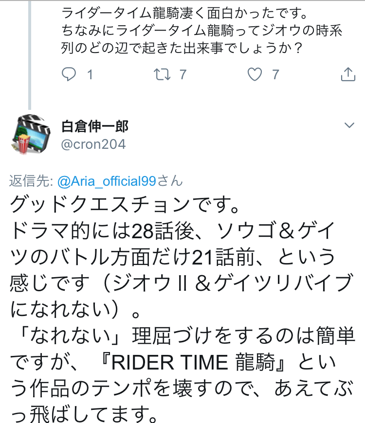 放送期間ずらすための間に合わせ番組なのに人気出るもんだから脚本家に逃げられてるのに、スポンサーや上から無茶言われた末の結果だからな結構設定が変遷して行ってるし、ジオウもかなりライブ感重視で作ってるよな。面白くて最後きっちり締めてくれるんだったら何の問題もないけども