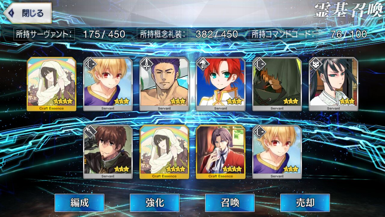 宗矩さんは普段着ぽくて素敵な第二再臨、土方さんは新選組の黒の羽織がかっこいい第三再臨、虞美人は眼鏡三つ編みサイコー!な第一再臨、そして巌窟王は去年の夏からずっとモンテ・クリストセレクションよ。>>907