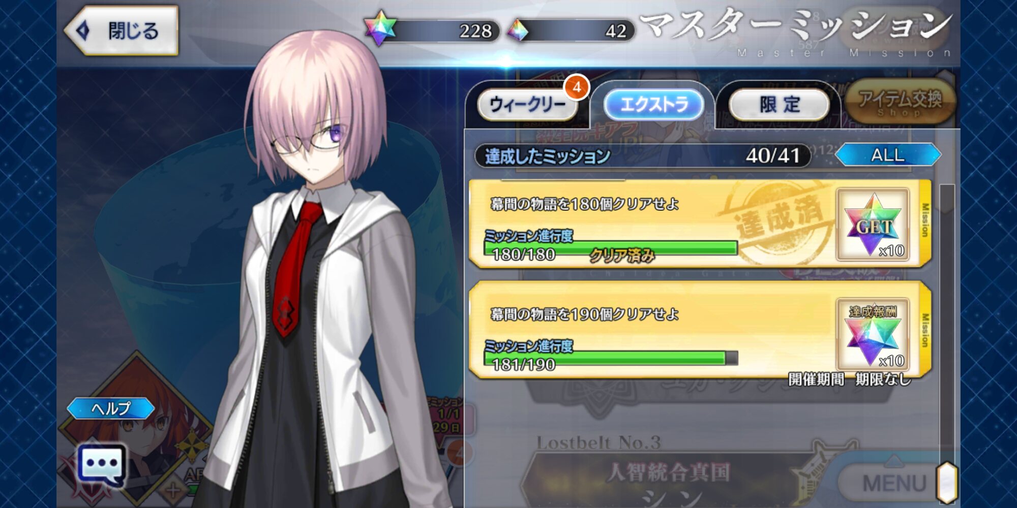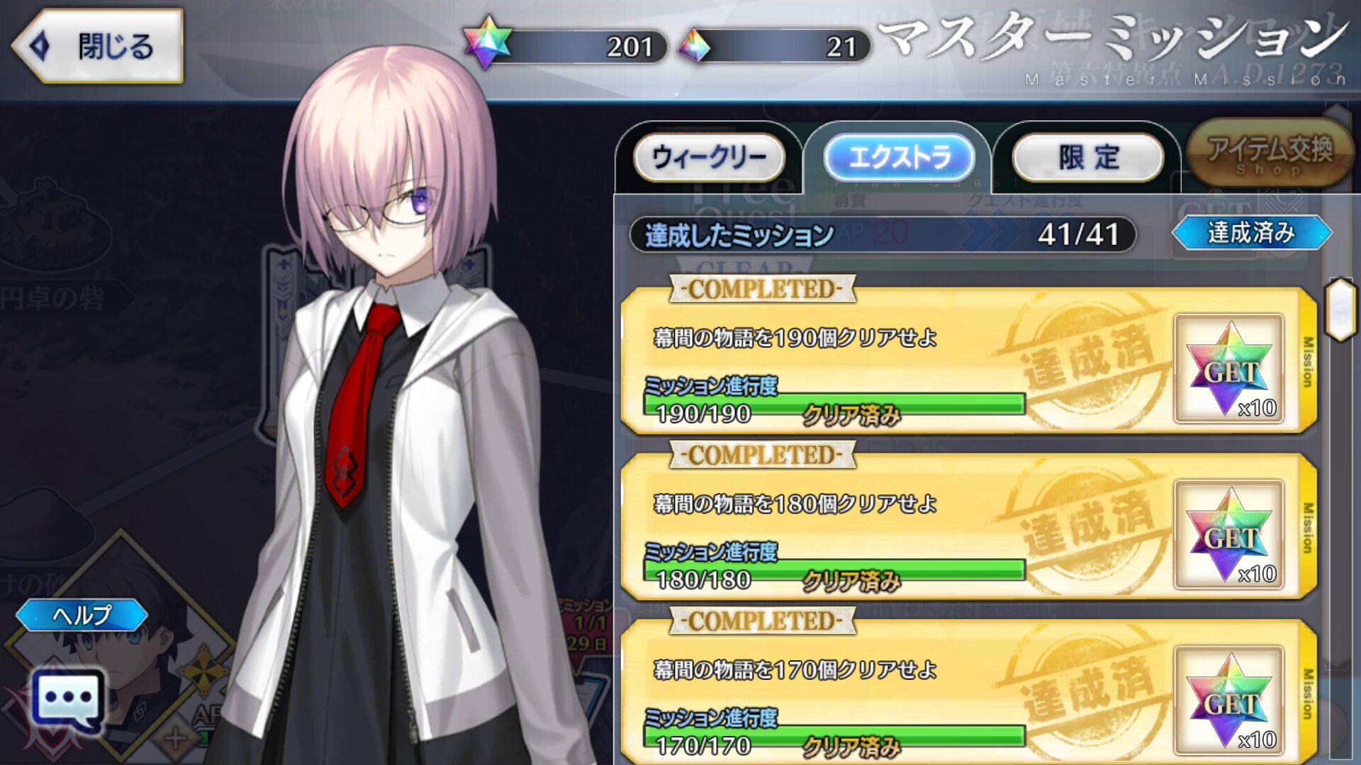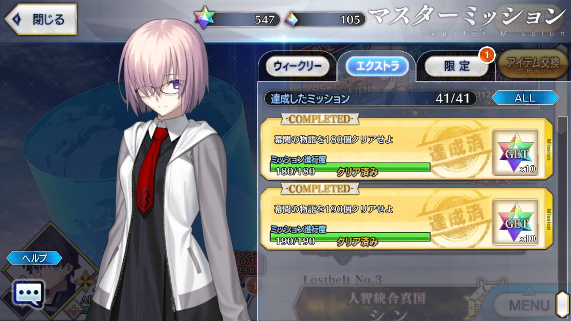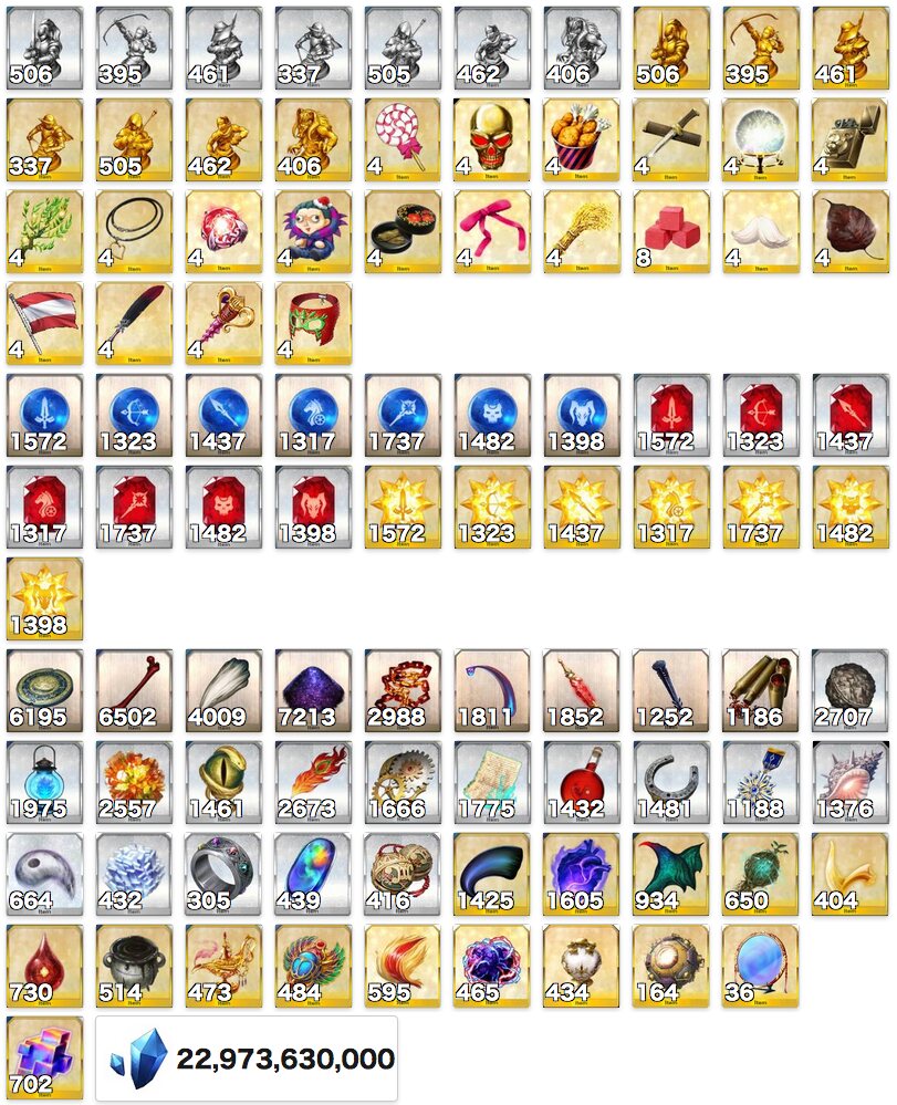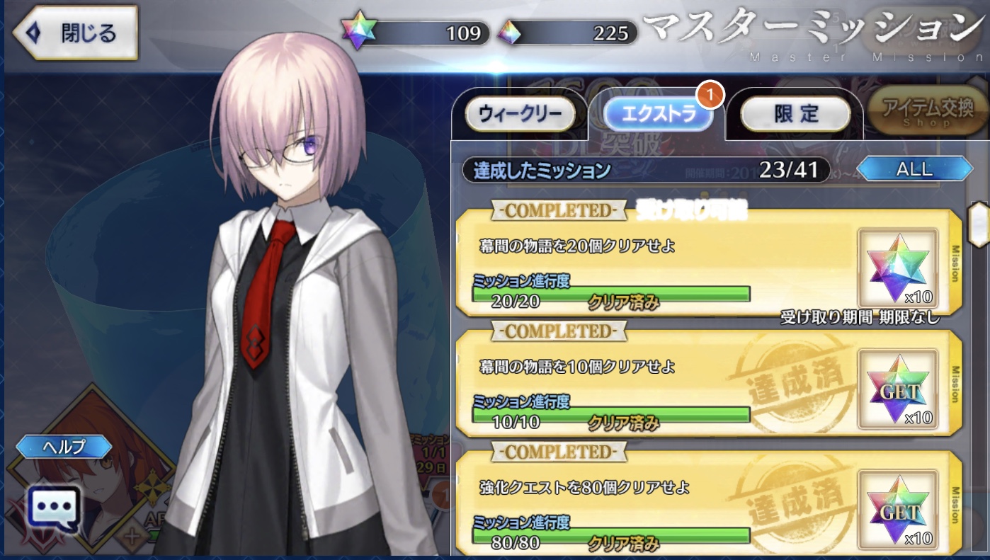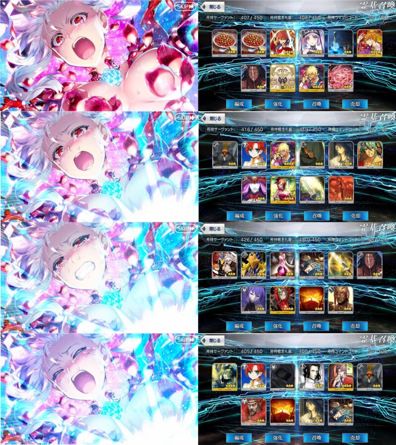 それぞれ槍メドゥーサ・りゅーたん・UMAの宝具レベルアップと上々の収穫だった石の数もだけど自分がこれだけ幕間クリアしてたことに驚くわ