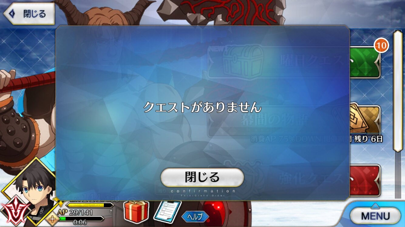 よーし、これはまだやれてない幕間クリアするためにも鯖育成せねばなるまいな