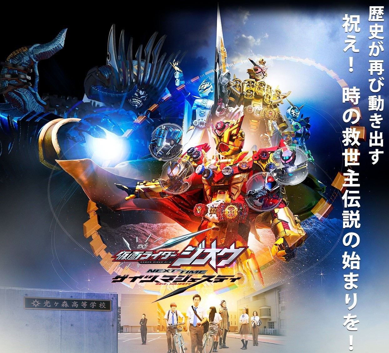 ライダータイム!仮面ライダージオウ! グランドタイム!クウガ!アギト!龍騎!ファイズ !ブレイド!響鬼!カブト!電王!キバ!ディケイド!ダブル!オーズ !フォーゼ!ウィザード!鎧武!ドライブ!ゴースト!エグゼイド!ビルド!祝え!仮面ライダーグランドジオウ!!!