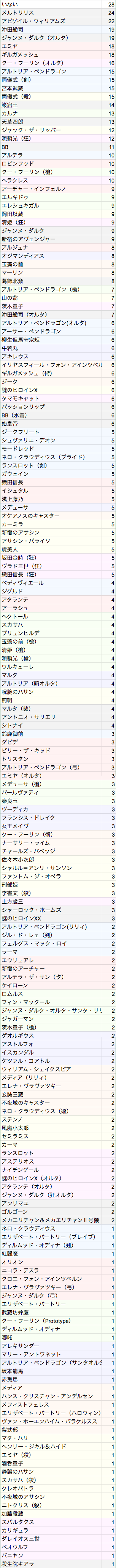 他アサシンで育っていると言えるのは、カーミラ、ジャック、小太郎、千代女、小次郎、静謐、呪腕>>906