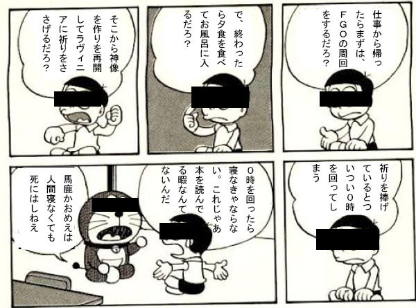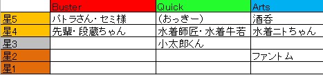 21時までによくてよ30で突撃というか師匠がグレイたんに『全体Qで来るなよ、NP効率UP持って来るなよ』って言うレスあったけど、宝具動画でQ耐性ダウンしながら全体撃ってましたね…………