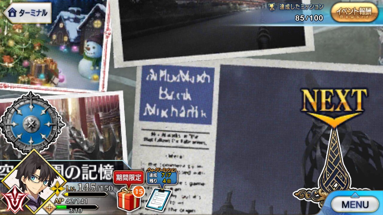 チェイテにはいなかったメカノッブクリスマス邪ンヌ攻略後、すげぇ勢いでミッションが開いてクリアされてミッションが開いてクリアされて、俺困惑