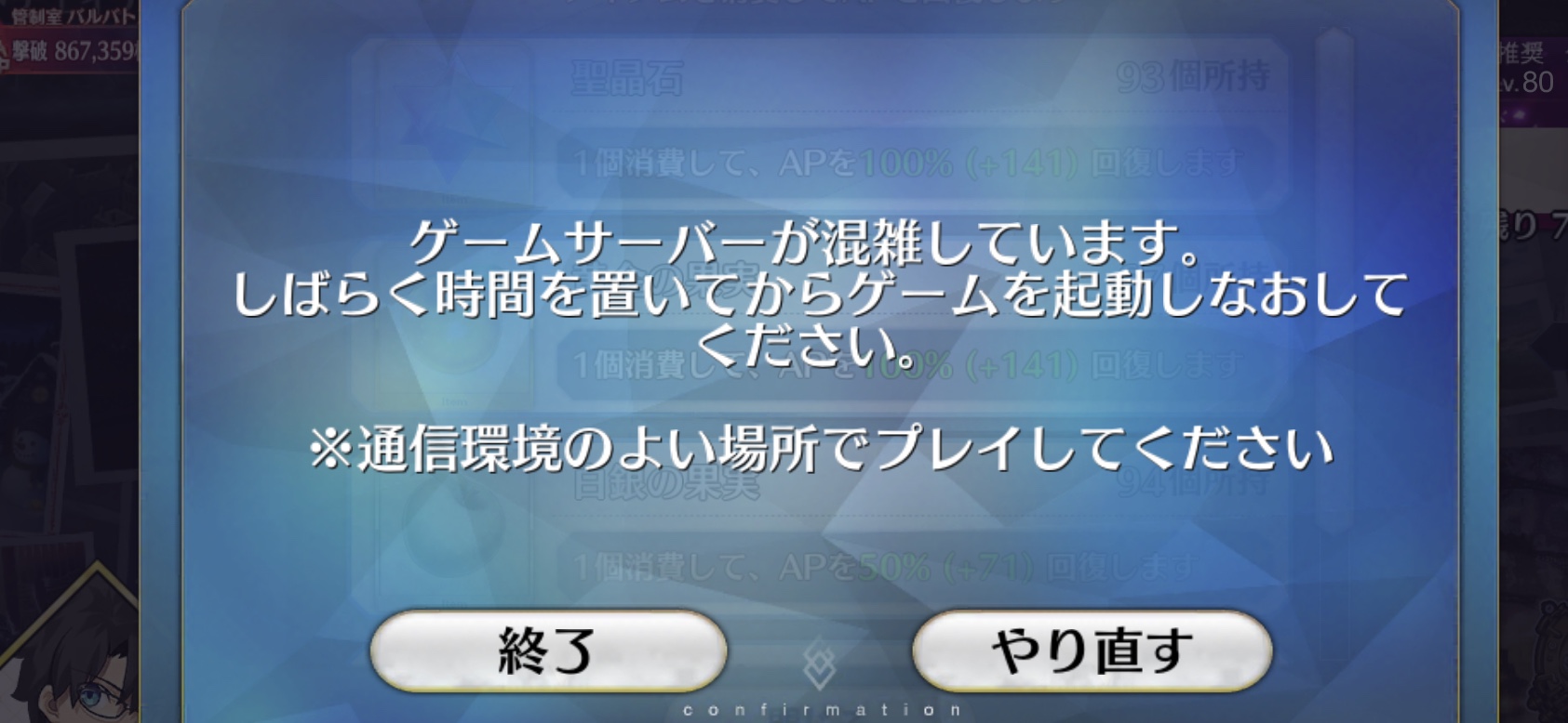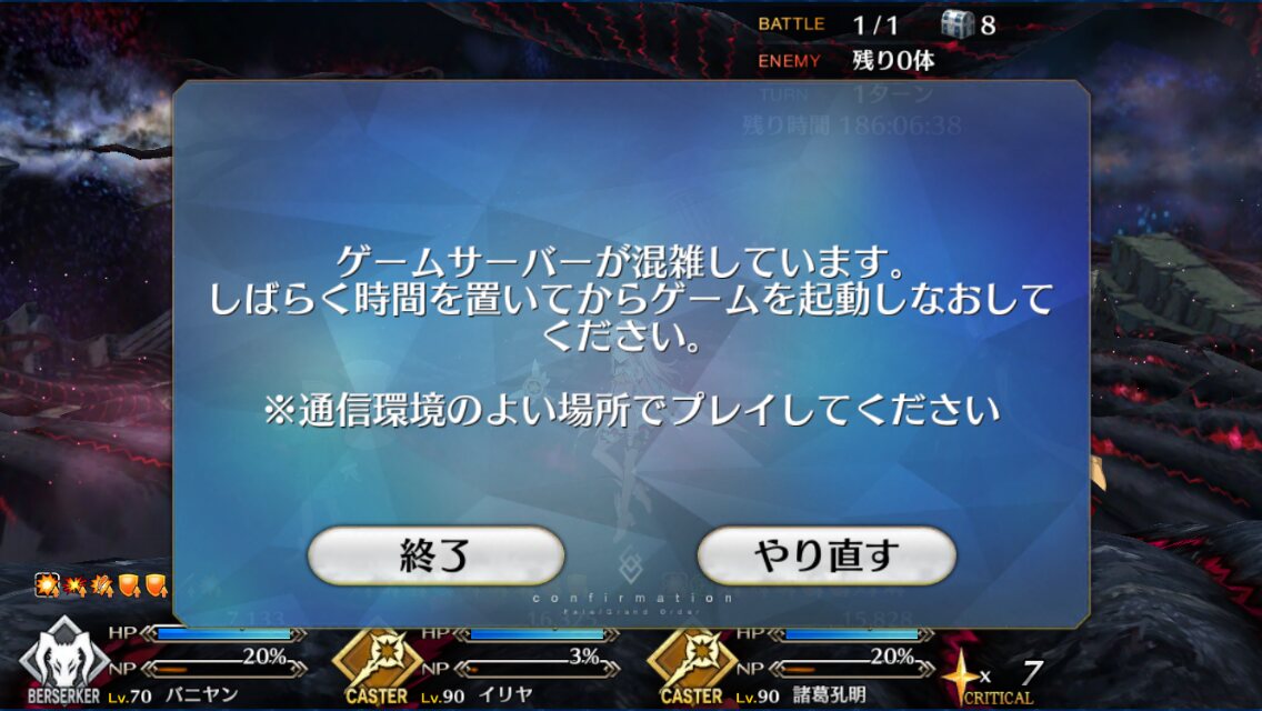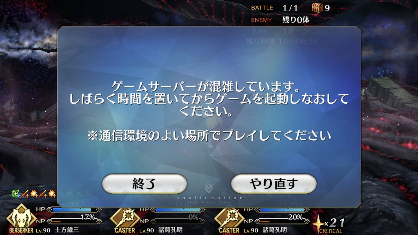 ゲームサーバーが混雑していますって出始めたwww