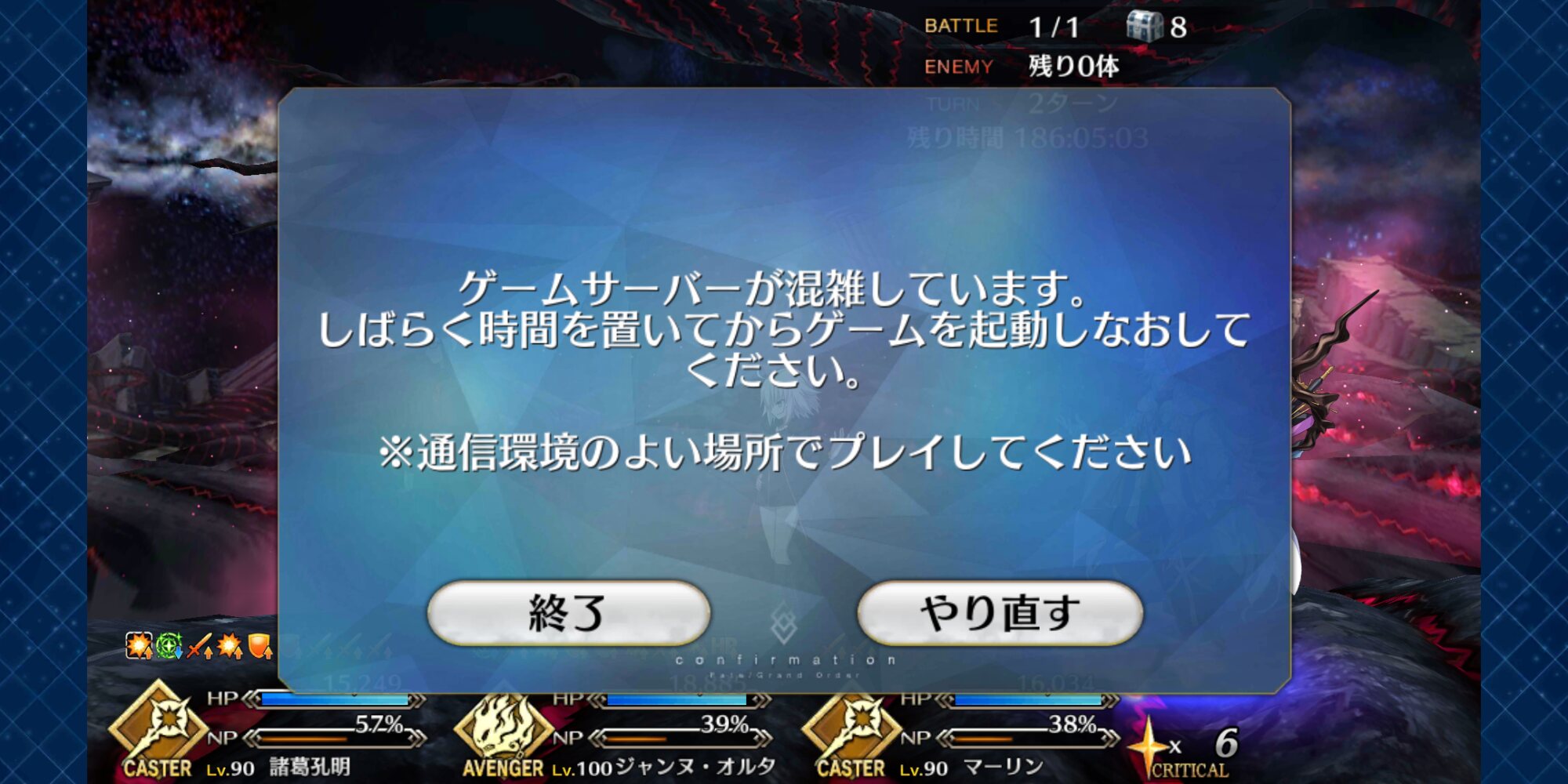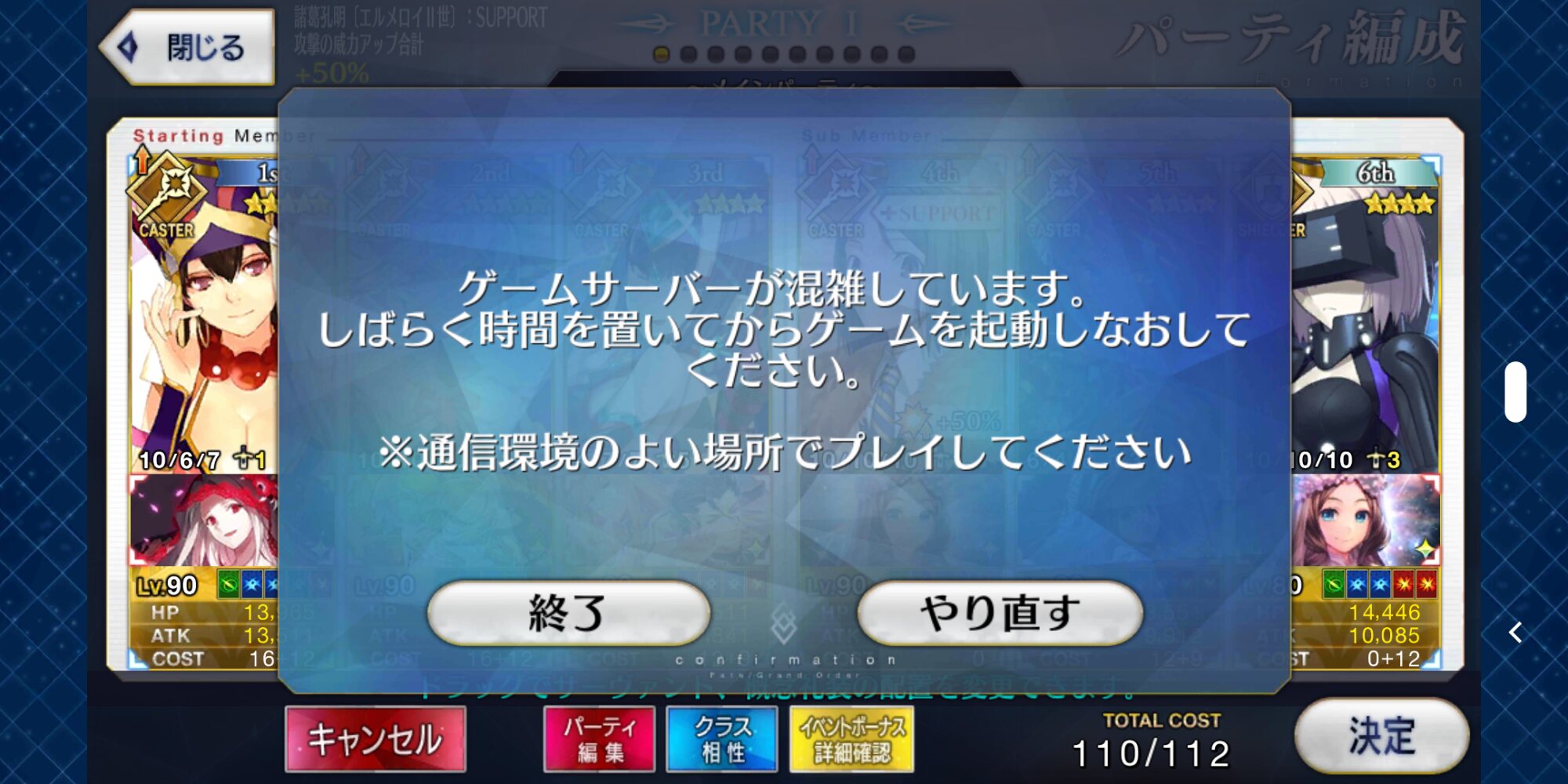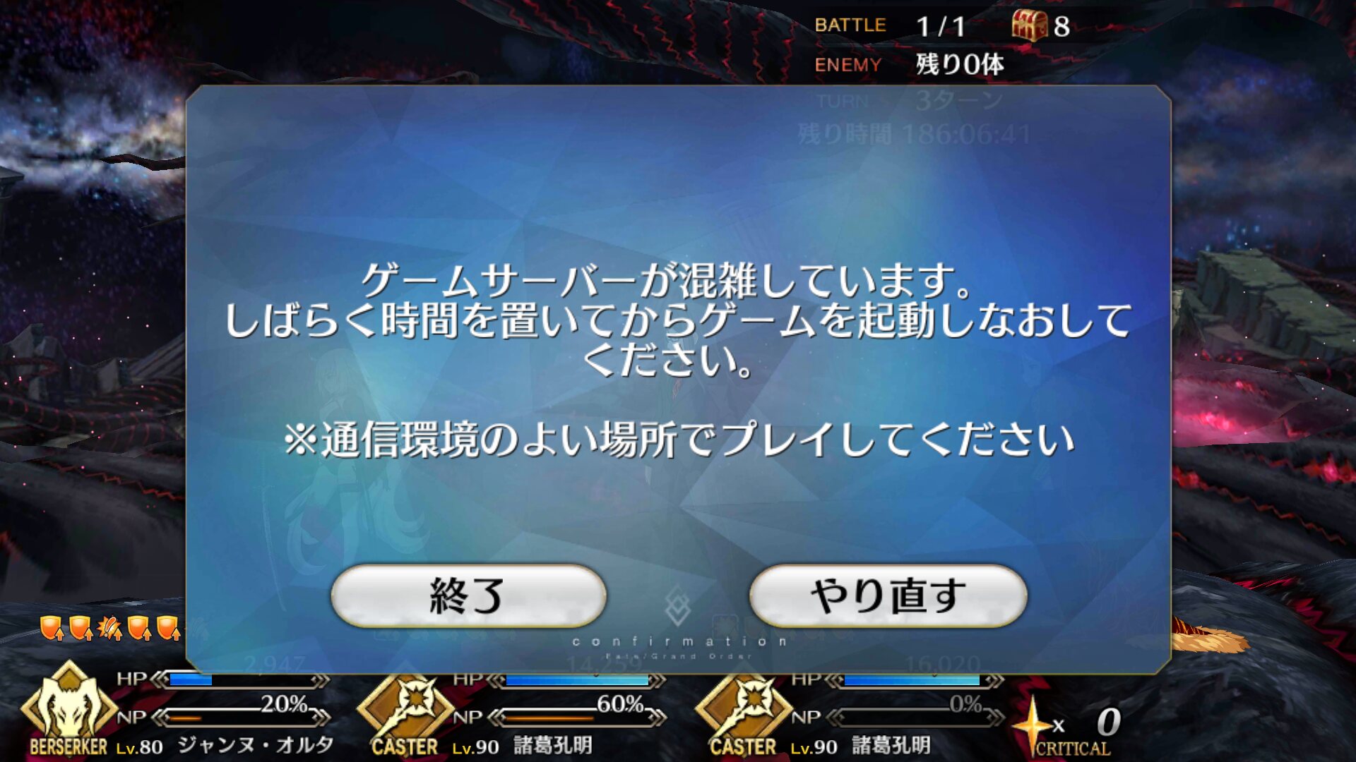 ゲームサーバーが混雑していますって出始めたwww