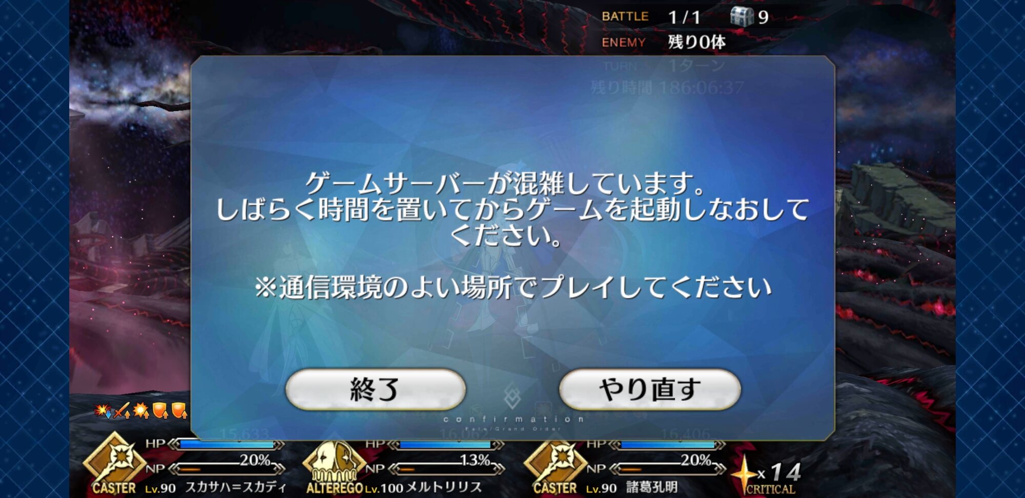 あ……戦ってる間に鯖落ちしてるし……