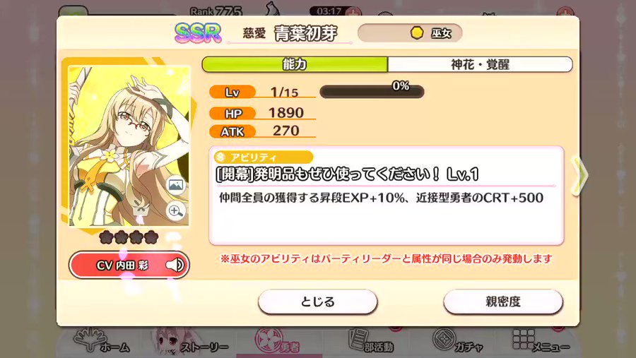 ちなみに育成は大変なのにメイン以外は余裕がある時だけにしましょう