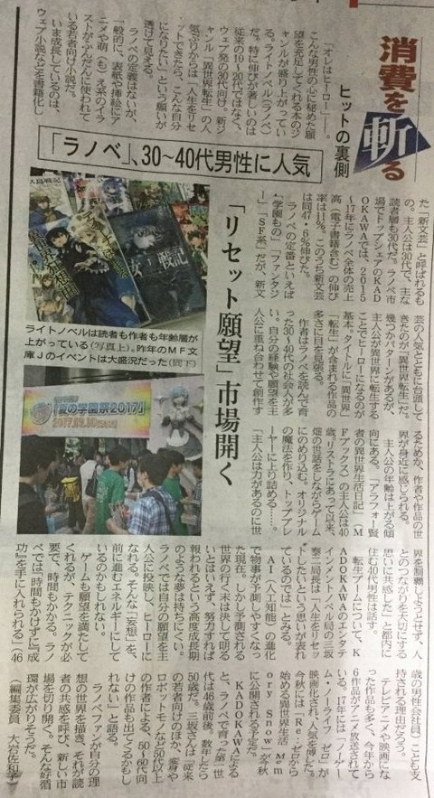 なろう作品の購買者アンケートを取るとかなりの数の作品で30代・40代の割合が10代・20代の割合を上回った