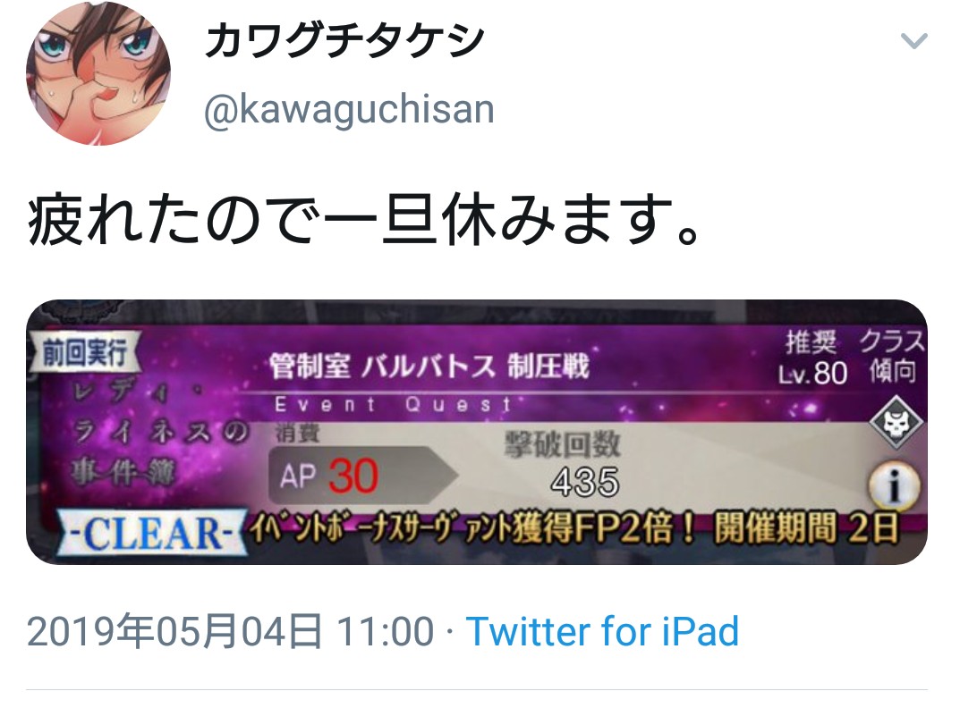 https://twitter.com/kawaguchisan/status/1124494078337404928?s=19ふむ、一つ思いついた