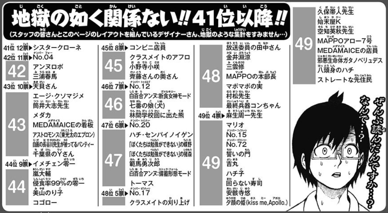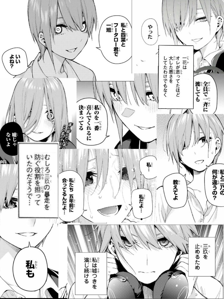 上の方でそのコメたちに対して直接文句言ってたら貴方に反論されたから、再反論しただけなんだけど…?大体俺は最初に、一花を理性的に批判してるコメについては理解できるって言ってるよね。不満なのはふざけ気味にヴィラン扱いしてることなんだよ。
