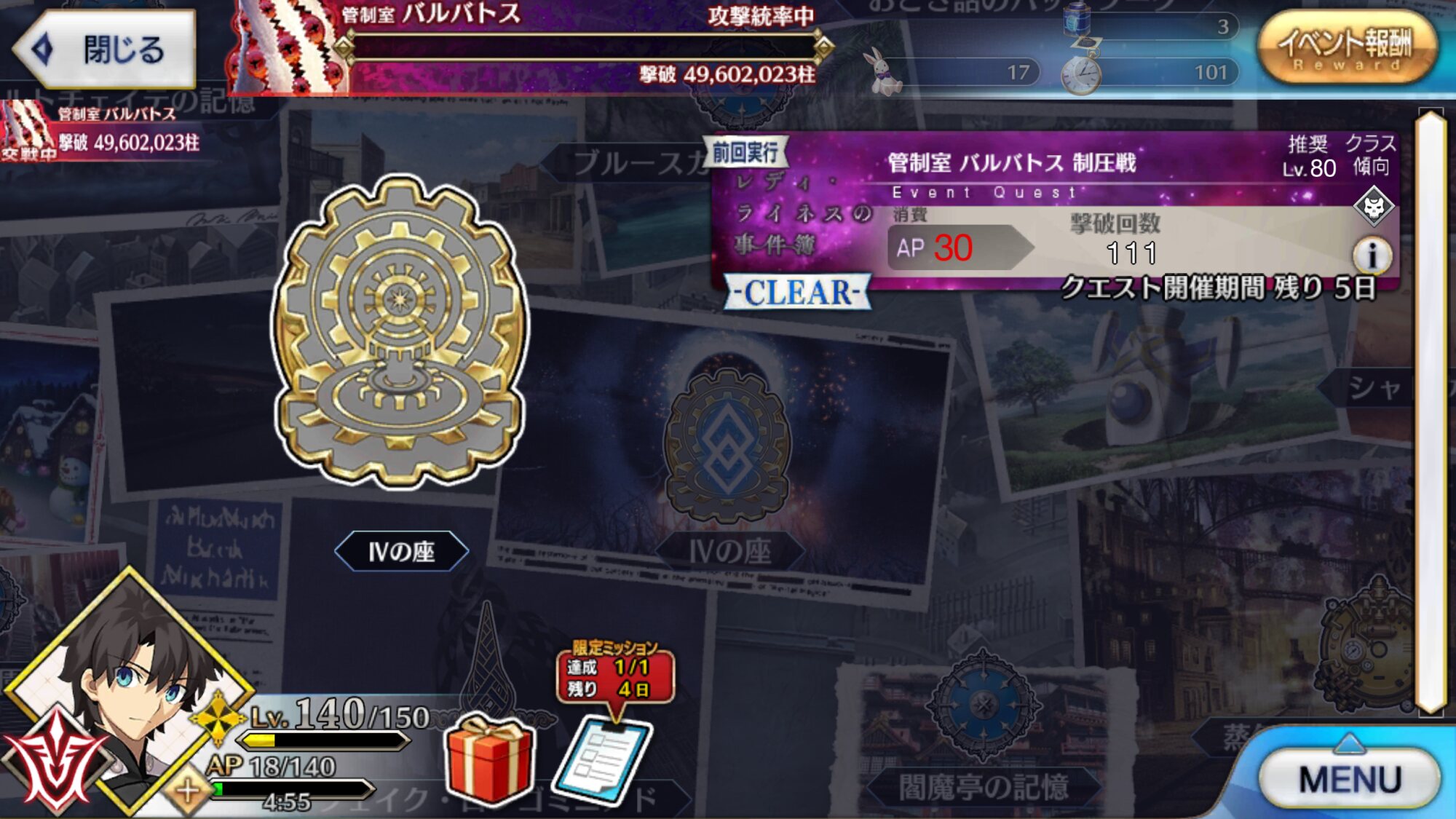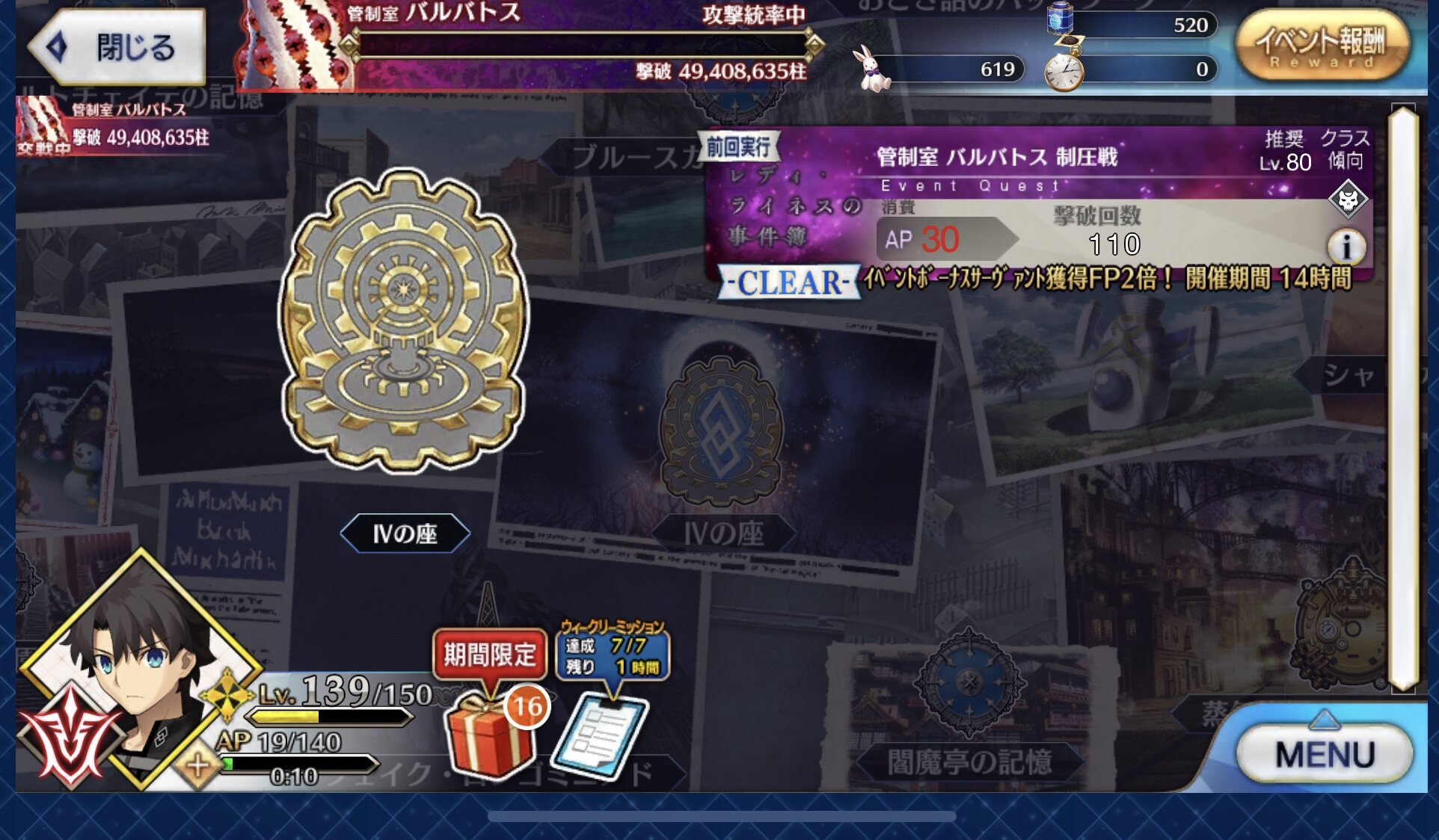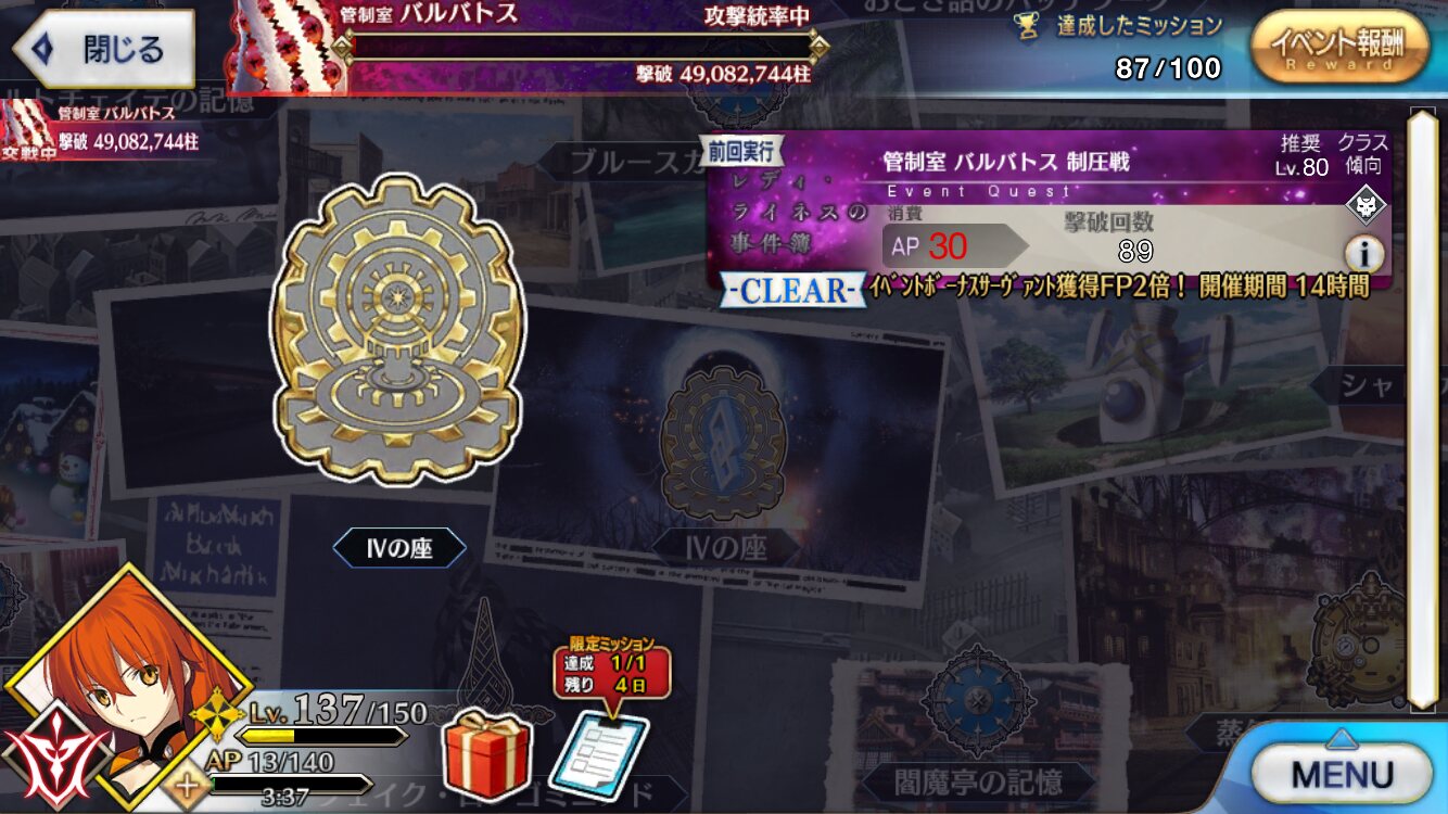 ああ、どうりで終局でのワンパンメンバーが使えなかったわけだ。ありがとう5分で1AP回復と考えてレイド1回挑戦(30AP)は2時間半