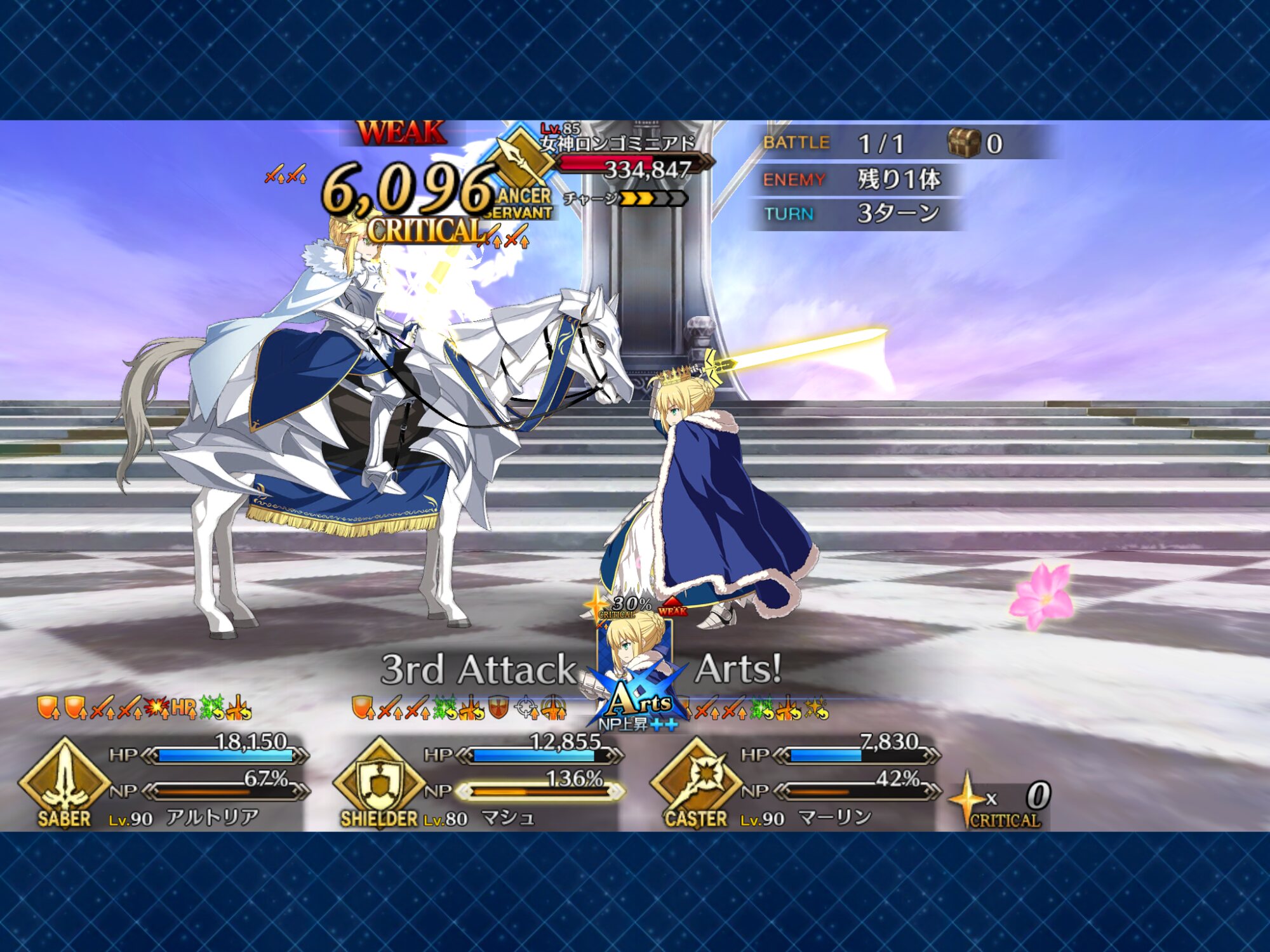 美しい唇をサディスティックな笑みの表情で曲げながら、膝をつく邪ンヌを蹴り続けるメルト。
