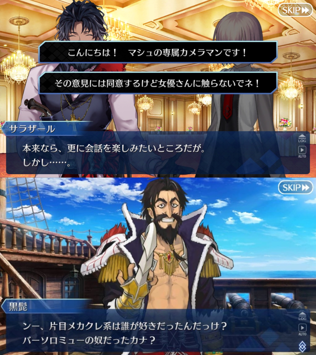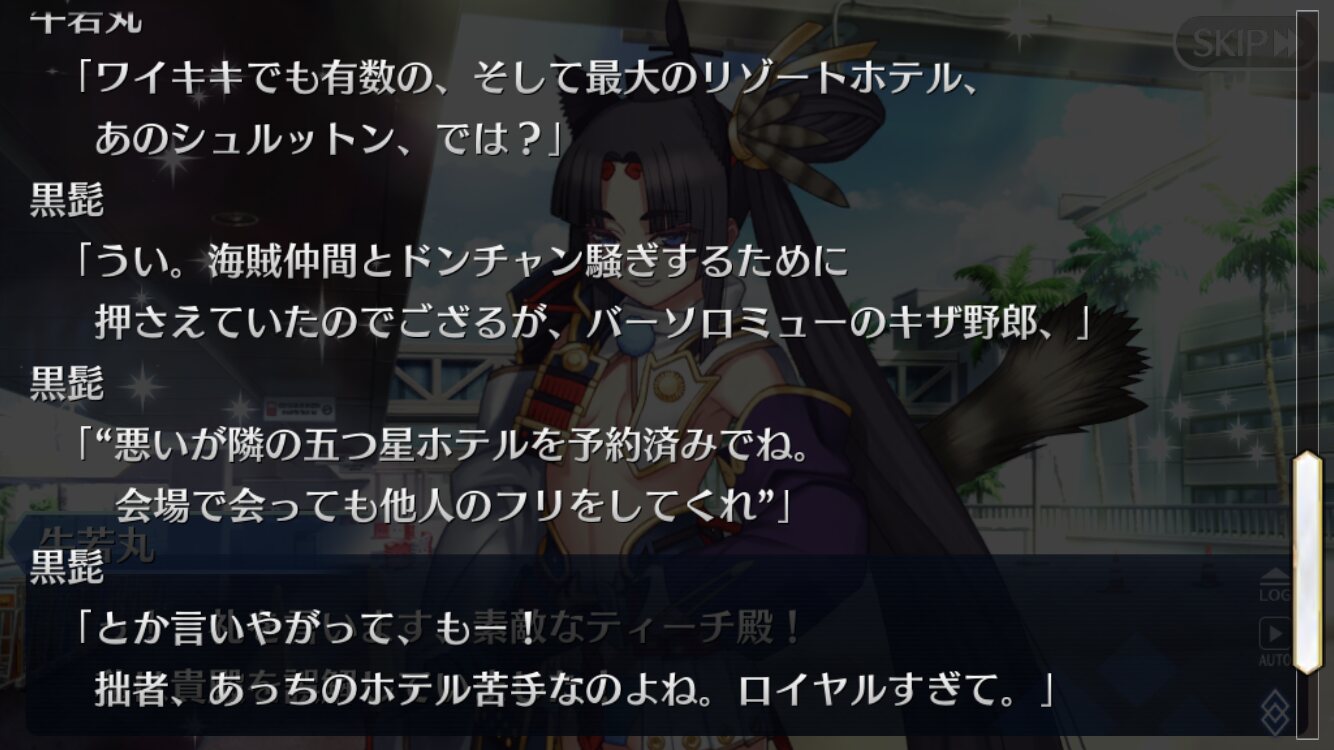ルルハワでロイヤルホテルに止まって知り合いと思われたくないから話しかけないでねと黒髭が言われたんじゃなかったかな