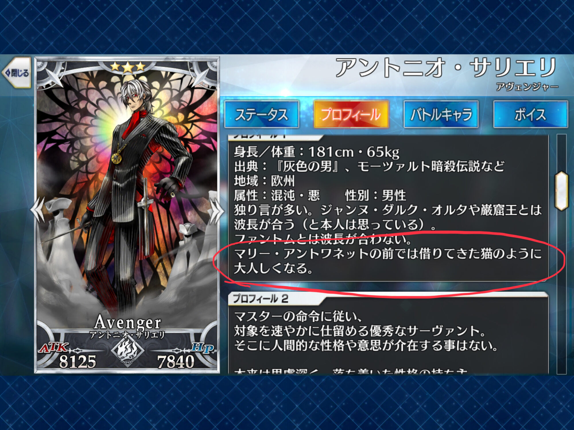 どっちかっていうと、サリエリ先生が働いていたのがウィーンのハプスブルク家だったからそこの娘であるマリーの前ではおとなしくなる、ってのが正しいかも。先生ウィーンの宮廷楽長だったし、パトロンの娘、みたいな?段階的に開示される情報にあれやこれやとざわつくプレイヤー達を見て神達はニマニマしてるんだろうな〜と思う今日この頃。