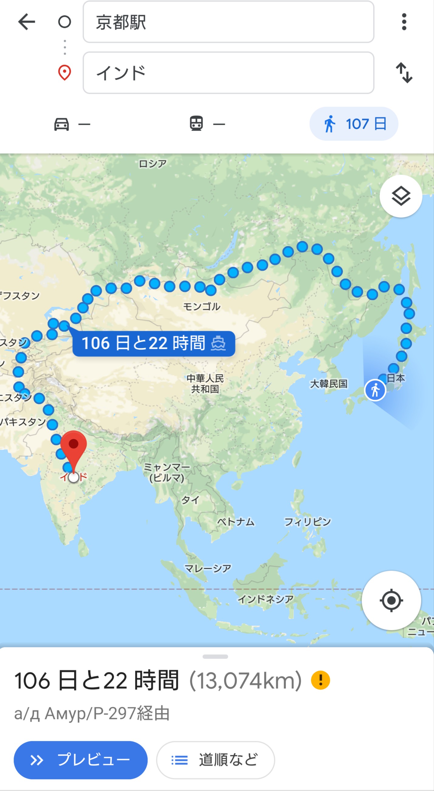因みに晴明さんの住所が分からなかったから適当に京都駅スタートでインドまでの徒歩距離をグーグルマップ先生に聞いてみたところ、大体107日ほどかかるそうですぞ。 - 56名無し2019/05/16(Thu) 20:51:29報告