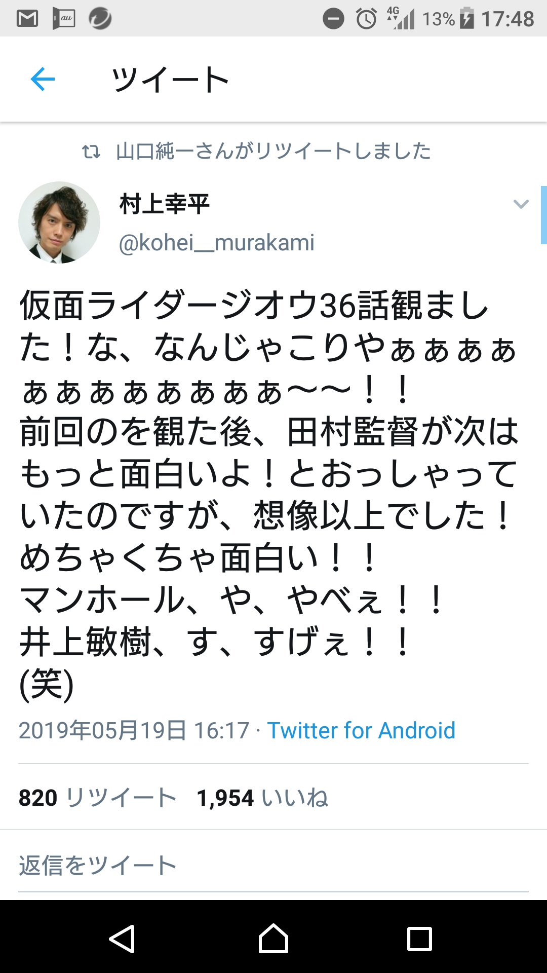 家建ててた人が可哀想でそういやてらそまさんが電王絡みで仕事したってツイッターで言ってたからジオウかね