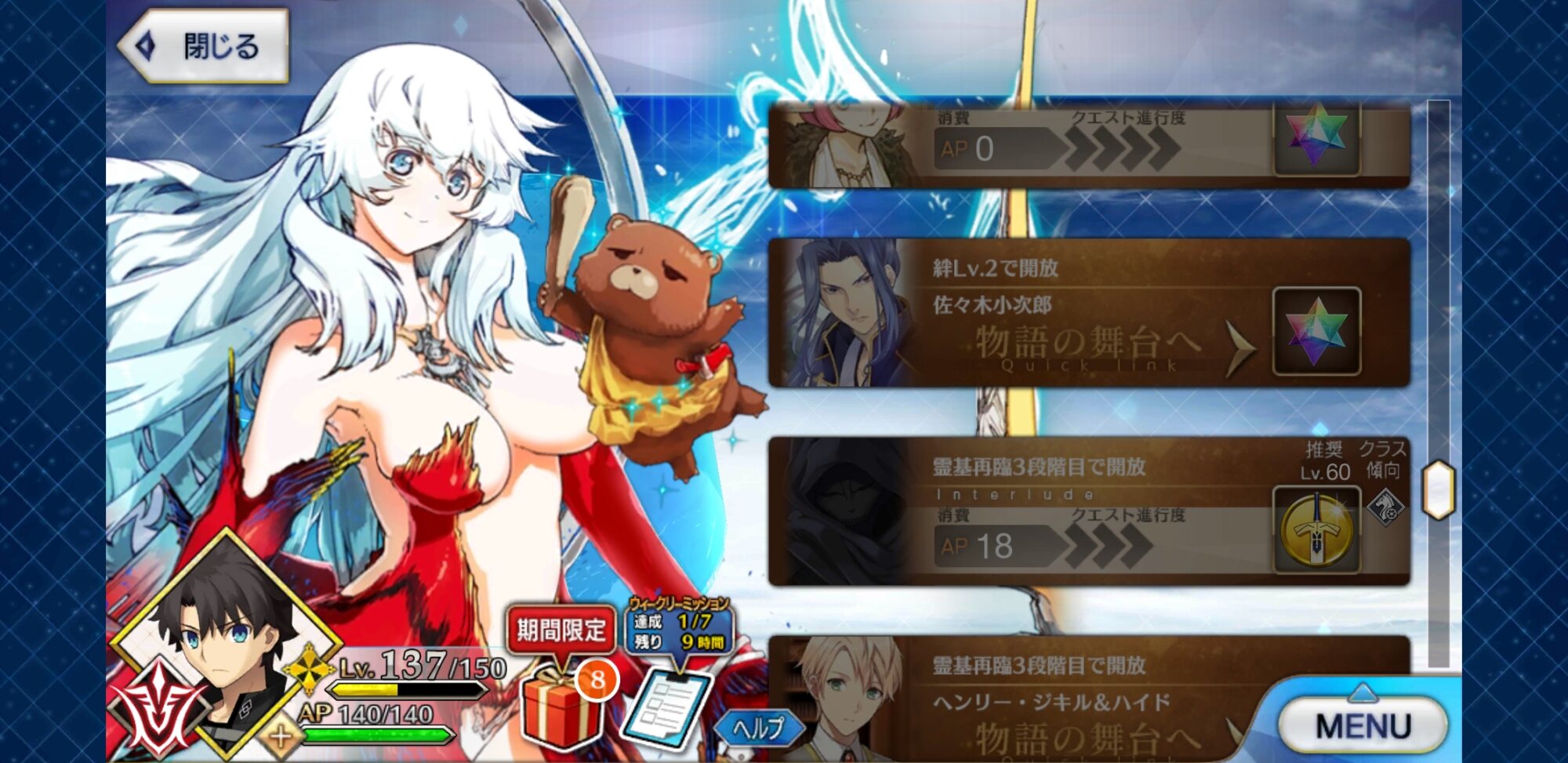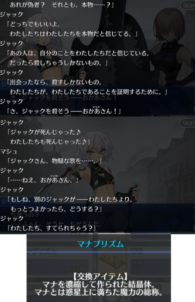 三章組は初期実装だけど本編にも過去作にもまだ出てない星2が複数いたからなぁなんの能力もない三枝さんを聖杯戦争から守りながら、嵐のなかに生まれる束の間の平穏を共に生きる√