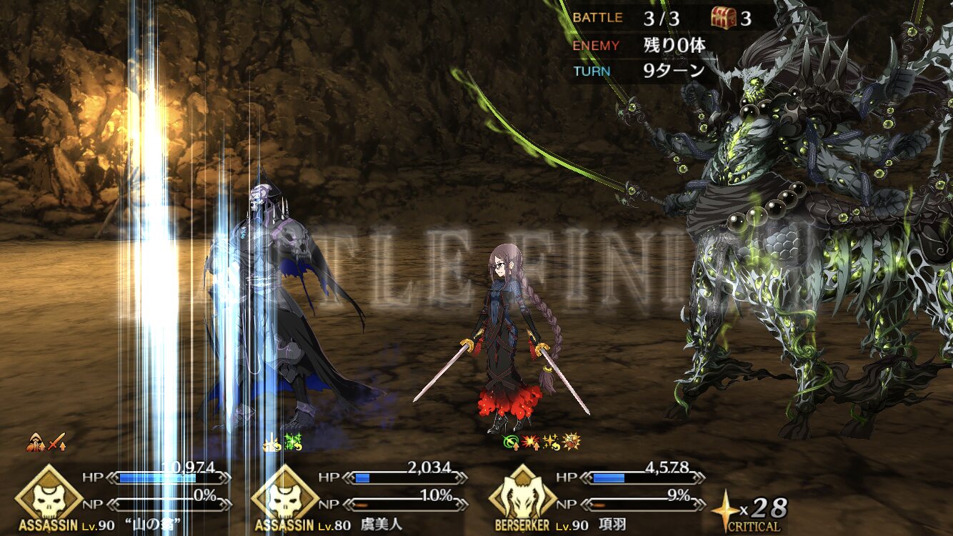 弓エネミー相手に粘り勝てるので、アサシンも相手にできるだろうと思われる。