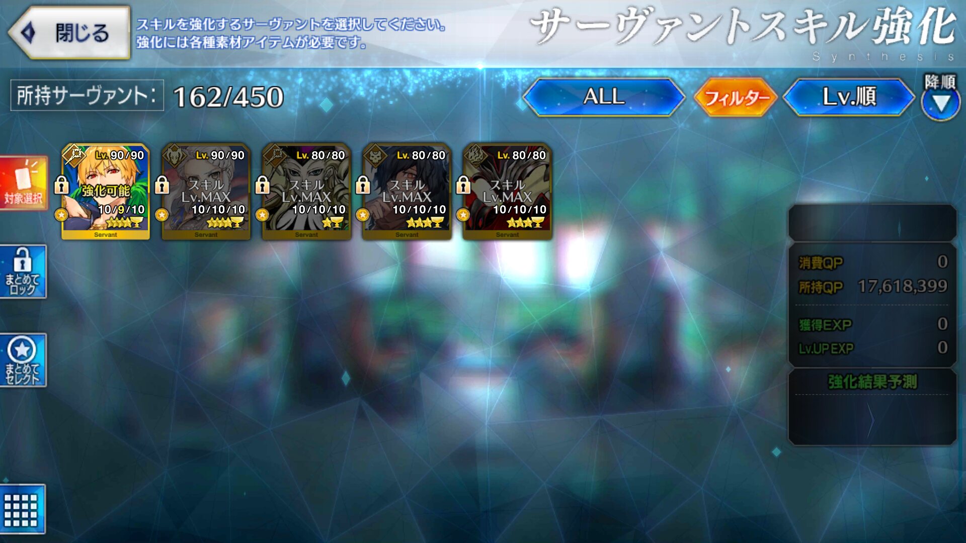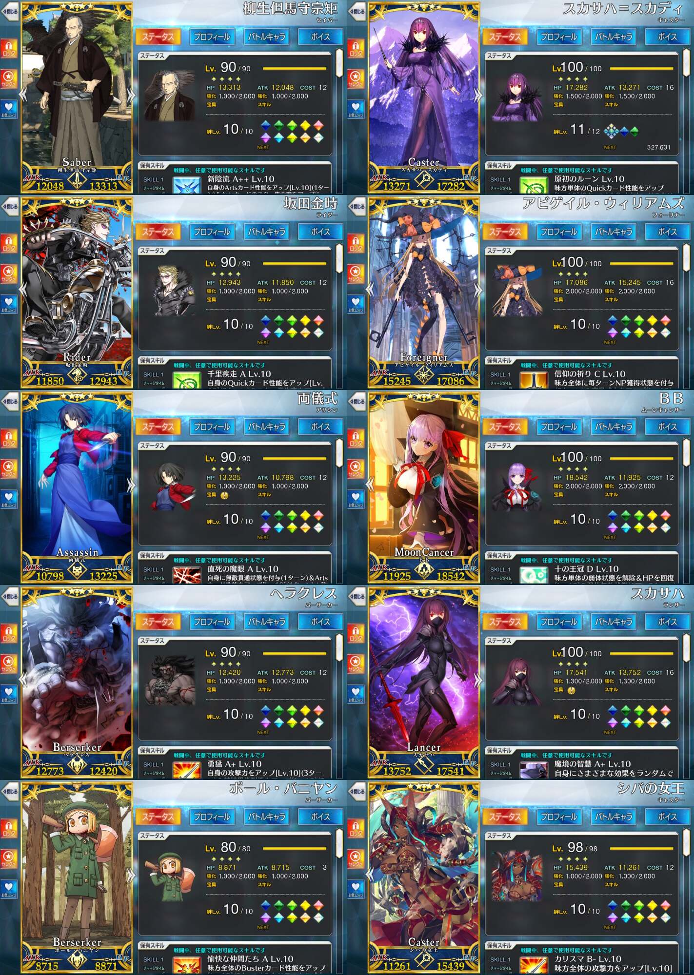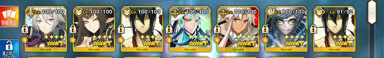 種火周回が嫌い過ぎるのと来てくれた人をみんな最終再臨レベルマ&スキル999にするの優先しててまだ100までした人はいないんですが、次のボックスイベが来たらアマデウスを100にしてサリエリさんを99にする予定です。