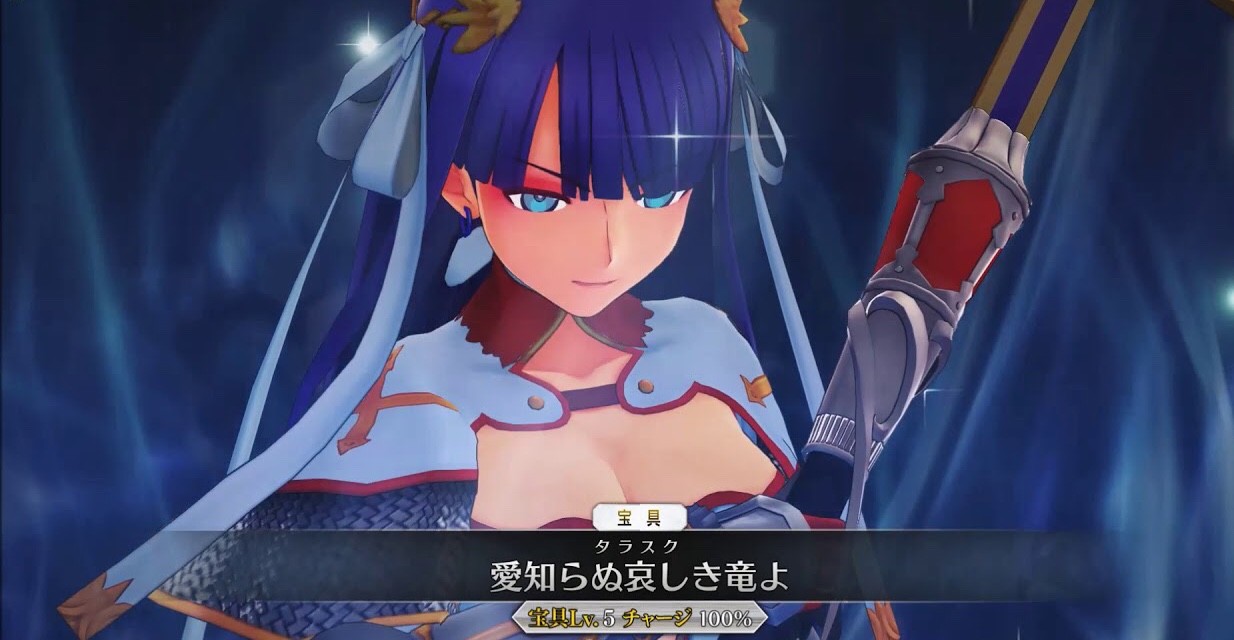 宝具は星を生みつつ味方全体にNP付与と体力回復を3T行い続けるA宝具。勿論重ね掛けもできるから使えば使うほど効果値が倍増。メリットの塊ね