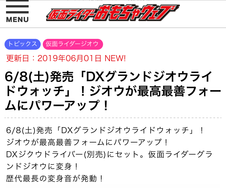 トムホってるんじゃないわよグランドジオウ、玩具発売近いって事は40話くらいに出るのかね?今まででもかなり遅い方か