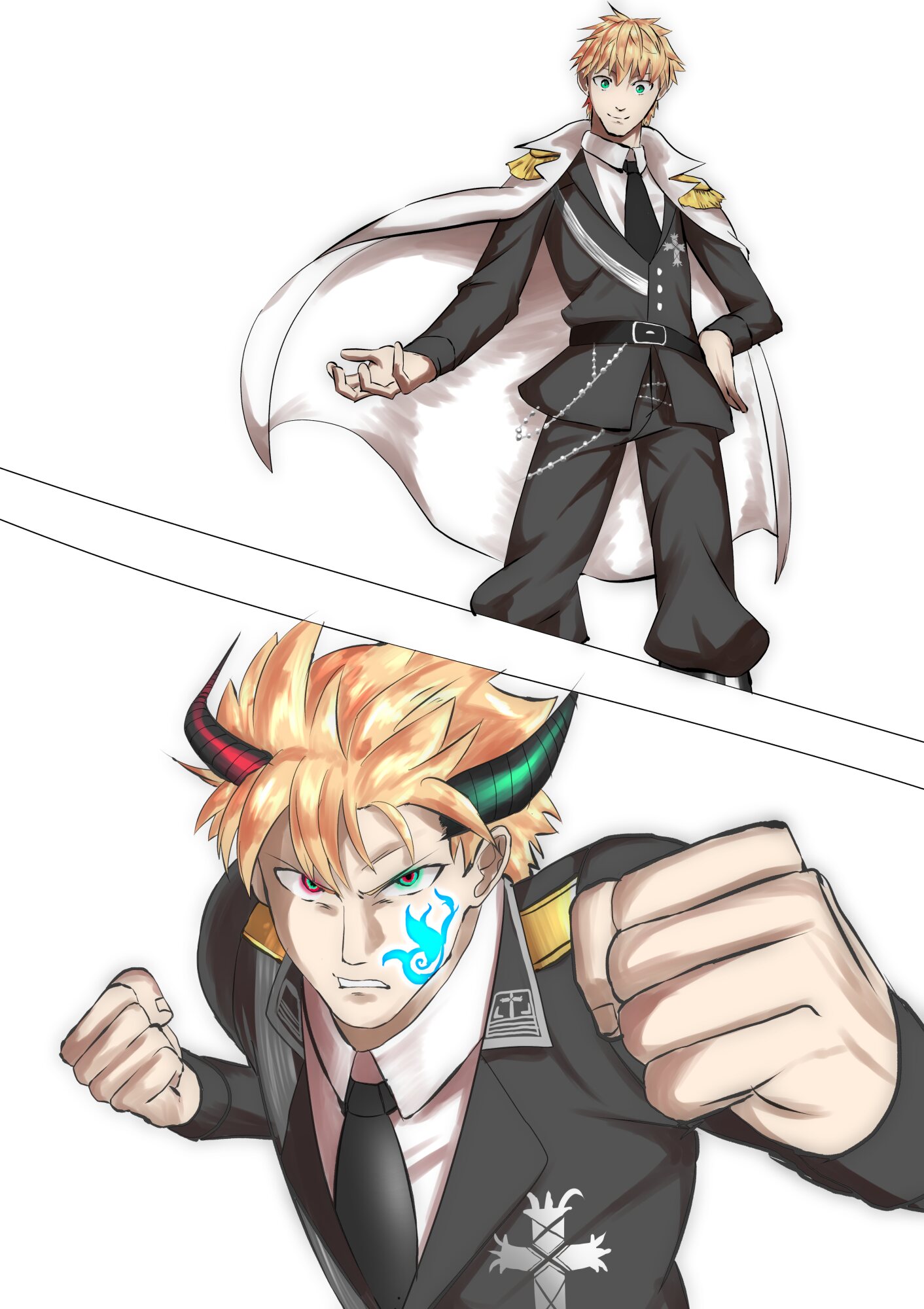 爛々と相手を射抜くような右、赤と左、翠のオッドアイ。