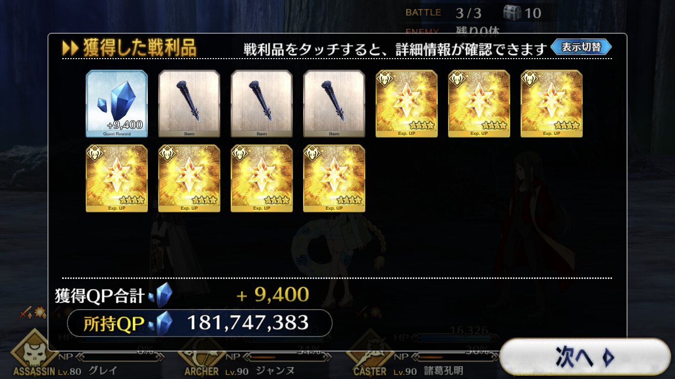 場持ちは非常にいいし、QのAP効率もいいから姫路城バンバン建つし
