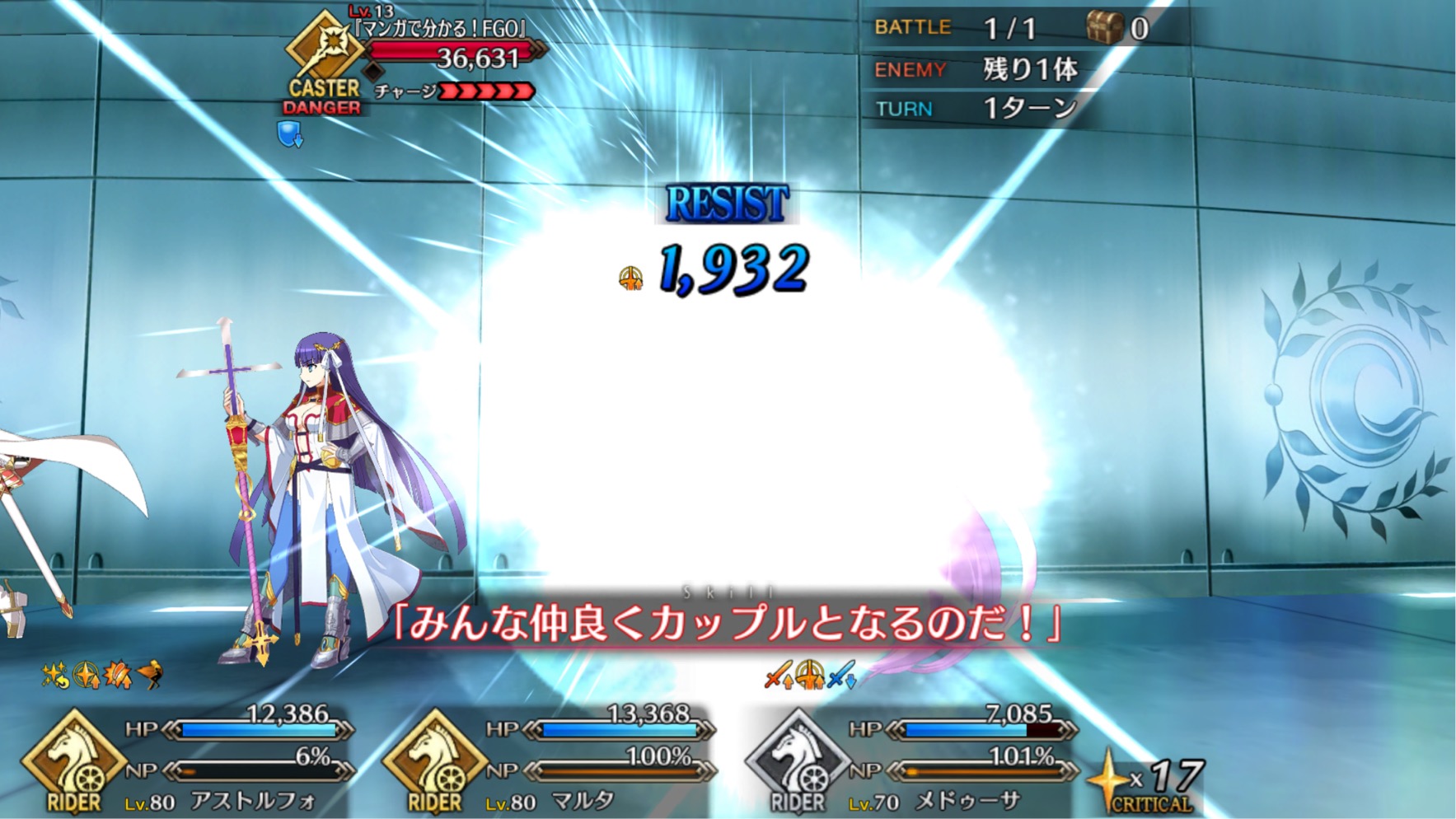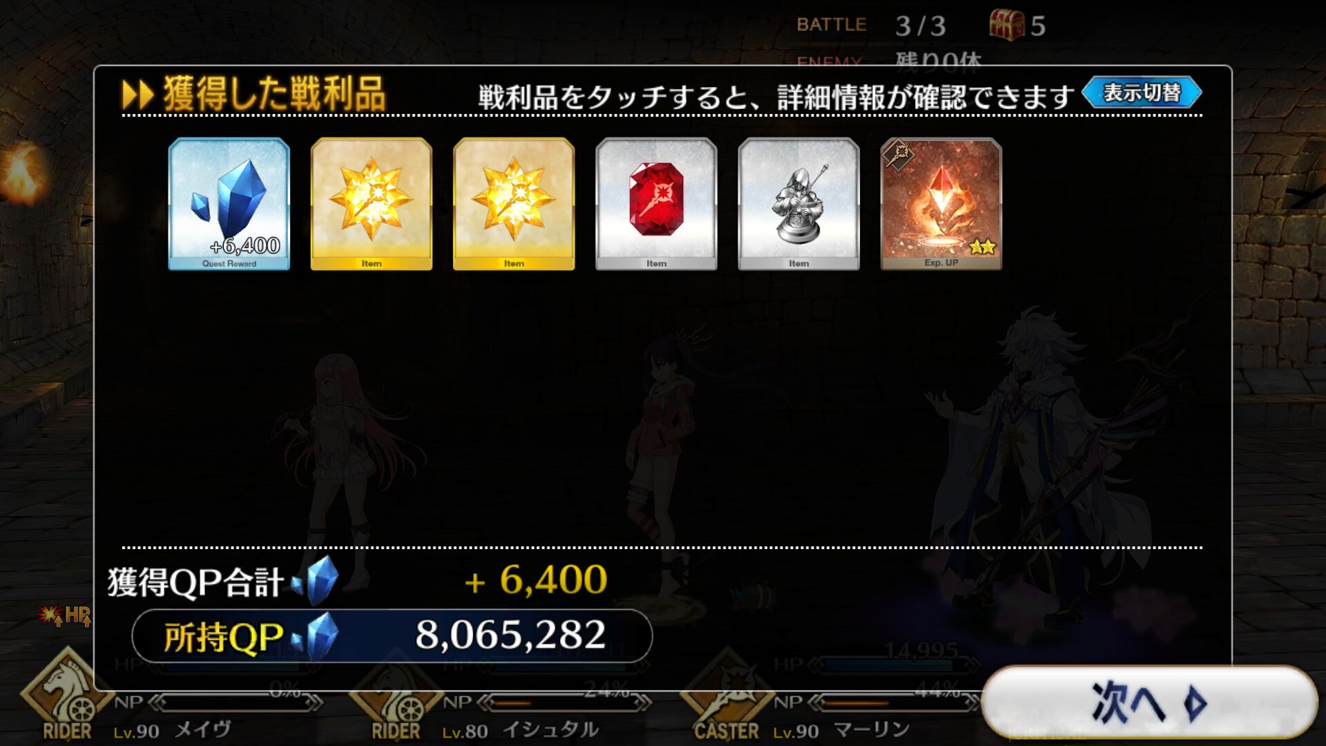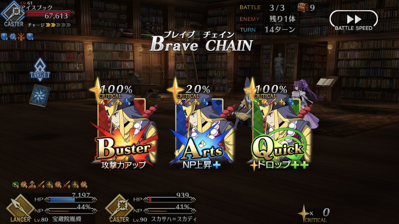 実際キャスターのサポーターにばかり頼ってると、高難易度でライダー相手する時、かなりキツくなるしね。そういう意味では蘭君もキャスター以外のサポーターとして期待のホープですよ。最近だとムネさん戦でケリィと一緒に相手のチャージをごりごり削ってくれました1000ならインドの王はシエル