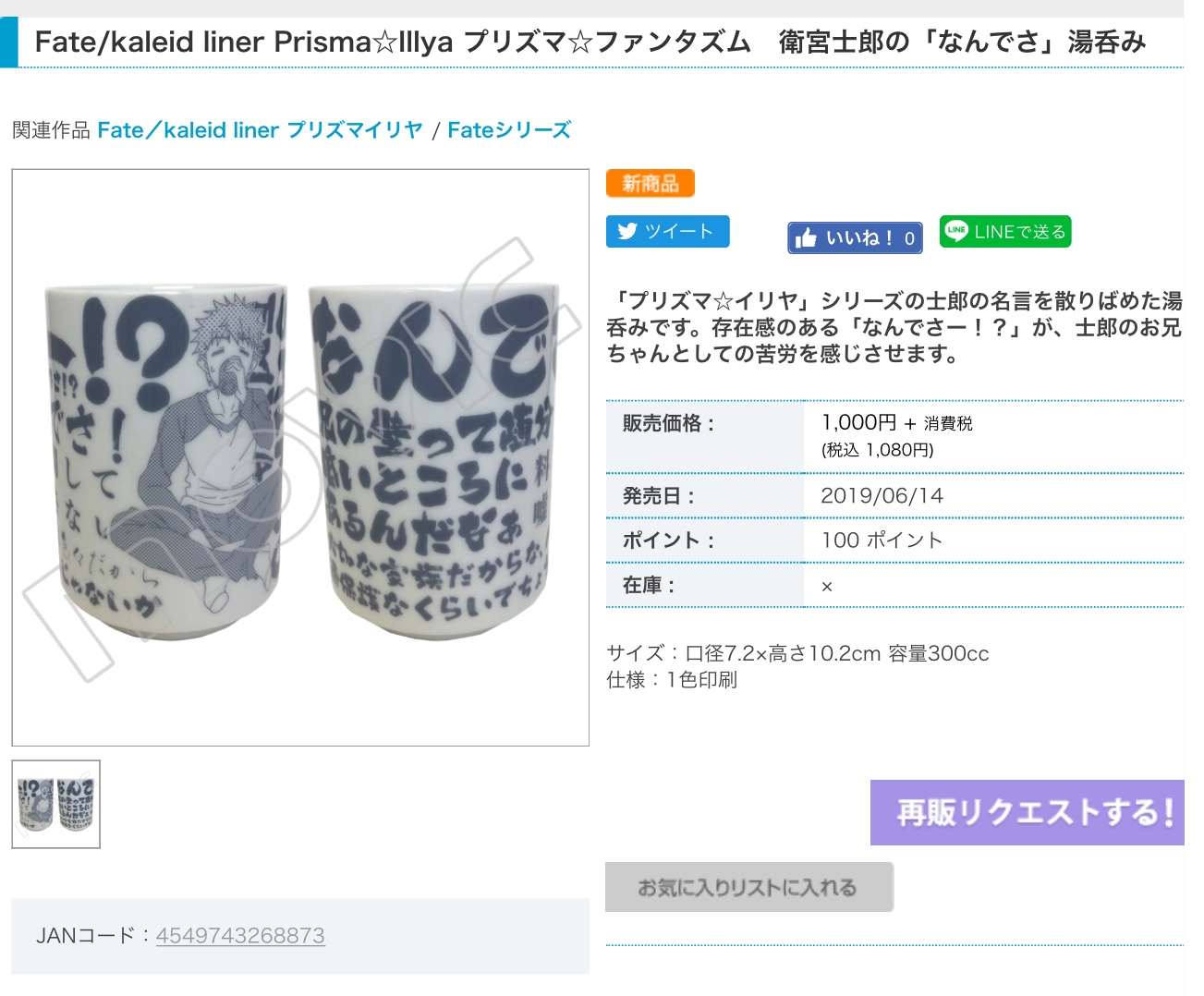 https://www.movic.jp/shop/g/g00754-00841-00008/>>7 エクスカリバーのしゃもじとか色々出てるからもう大分感覚麻痺してるけど、冷静に考えると「なんでさ湯のみ」ってなんでさ