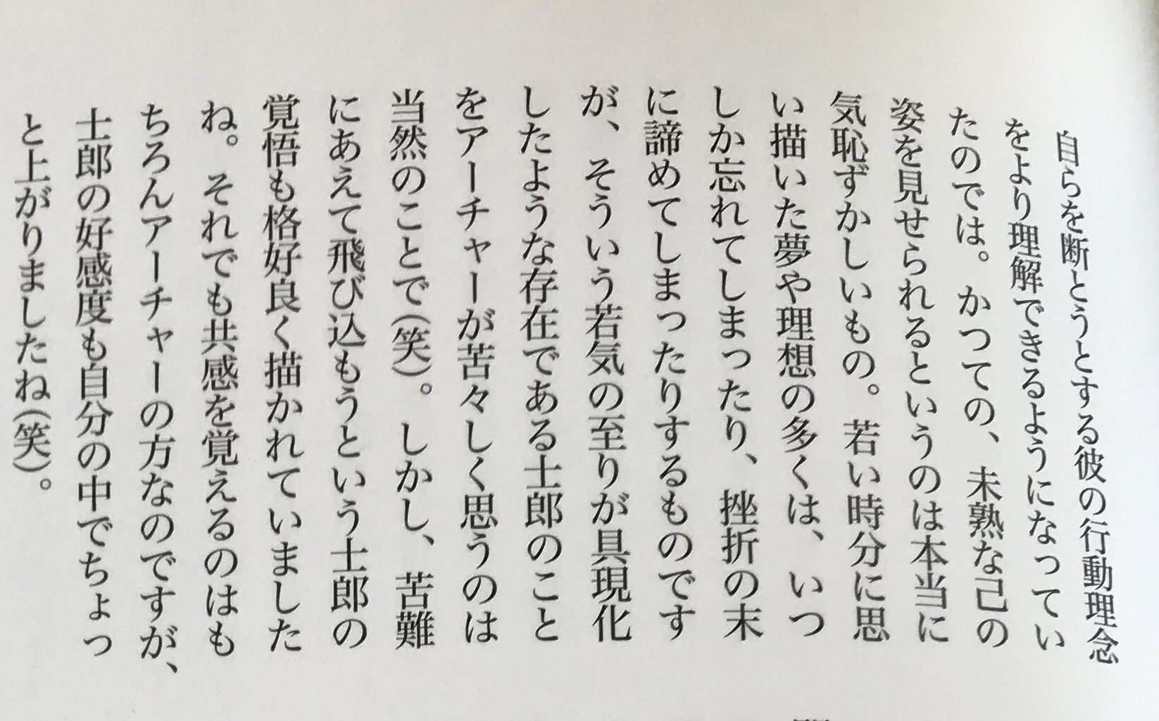 大災害で空っぽになったところから手を差しのべられ、そして理想を求め続けたっていう生き方が好きだ。