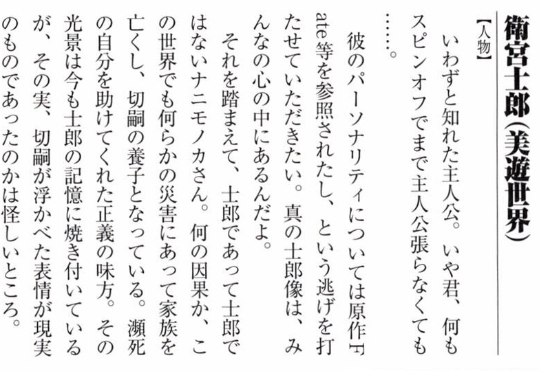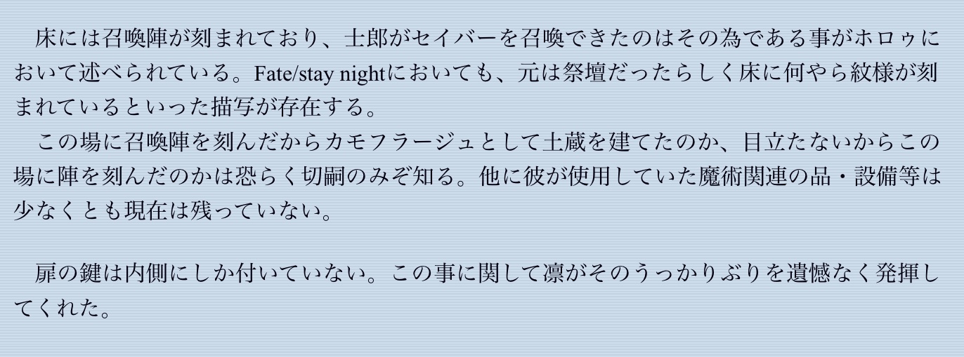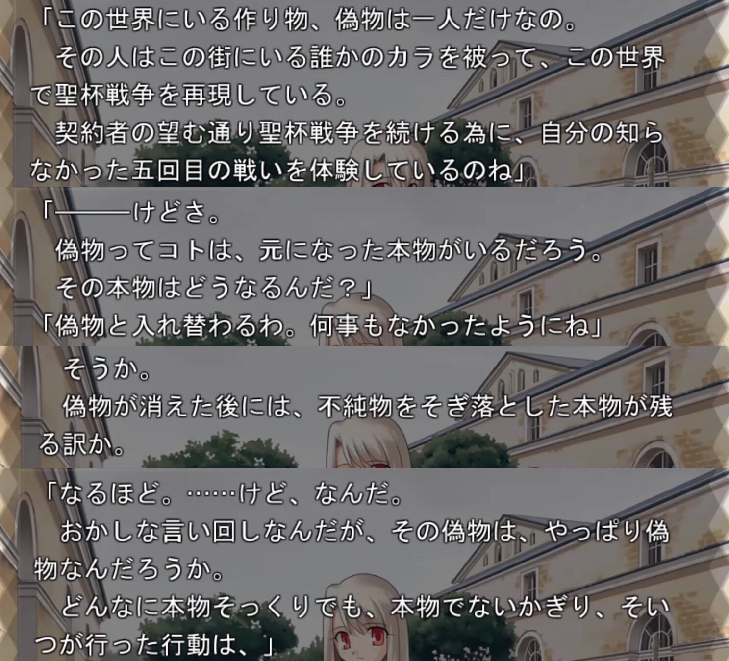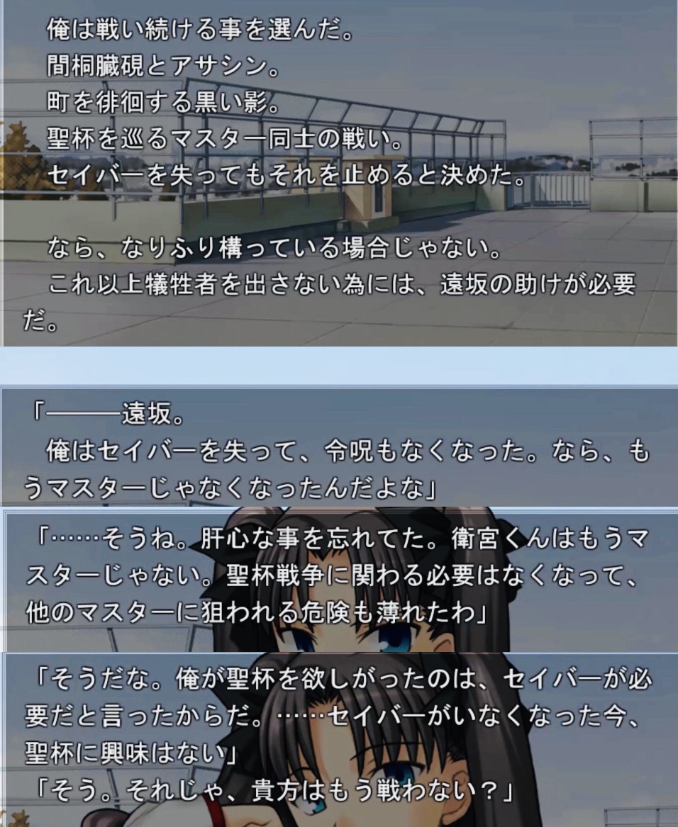 その前提の上で、士郎が偽者か本物かは、それぞれプレイヤーの感じ方で違う。今で言う擬似鯖なのだろうか