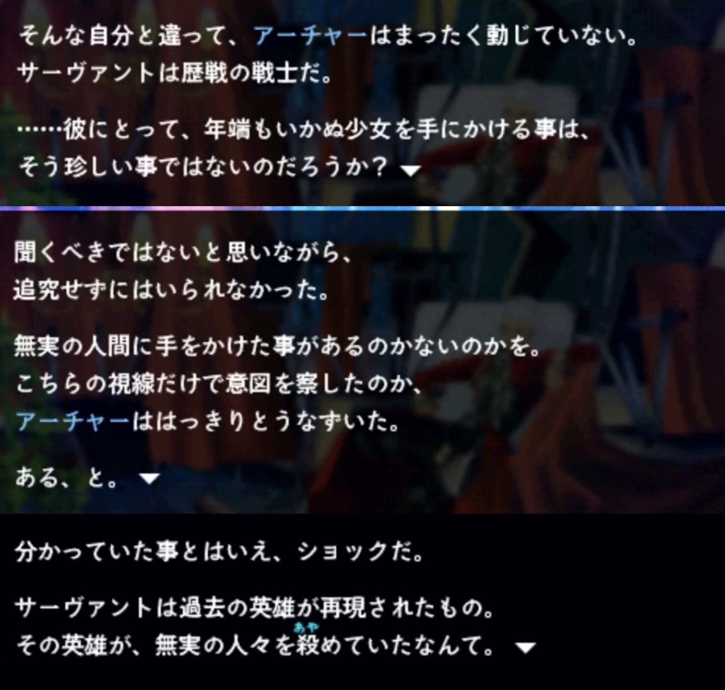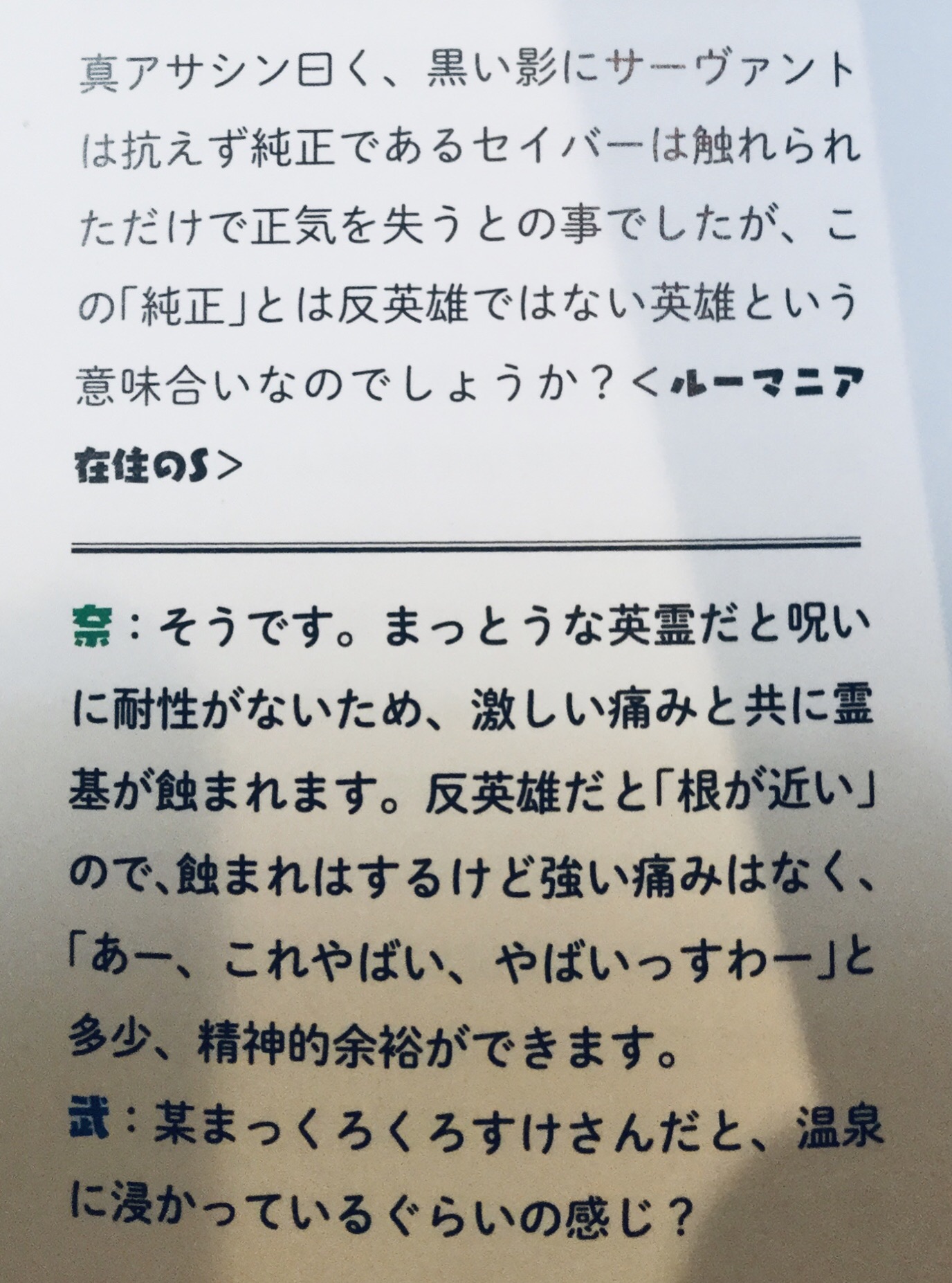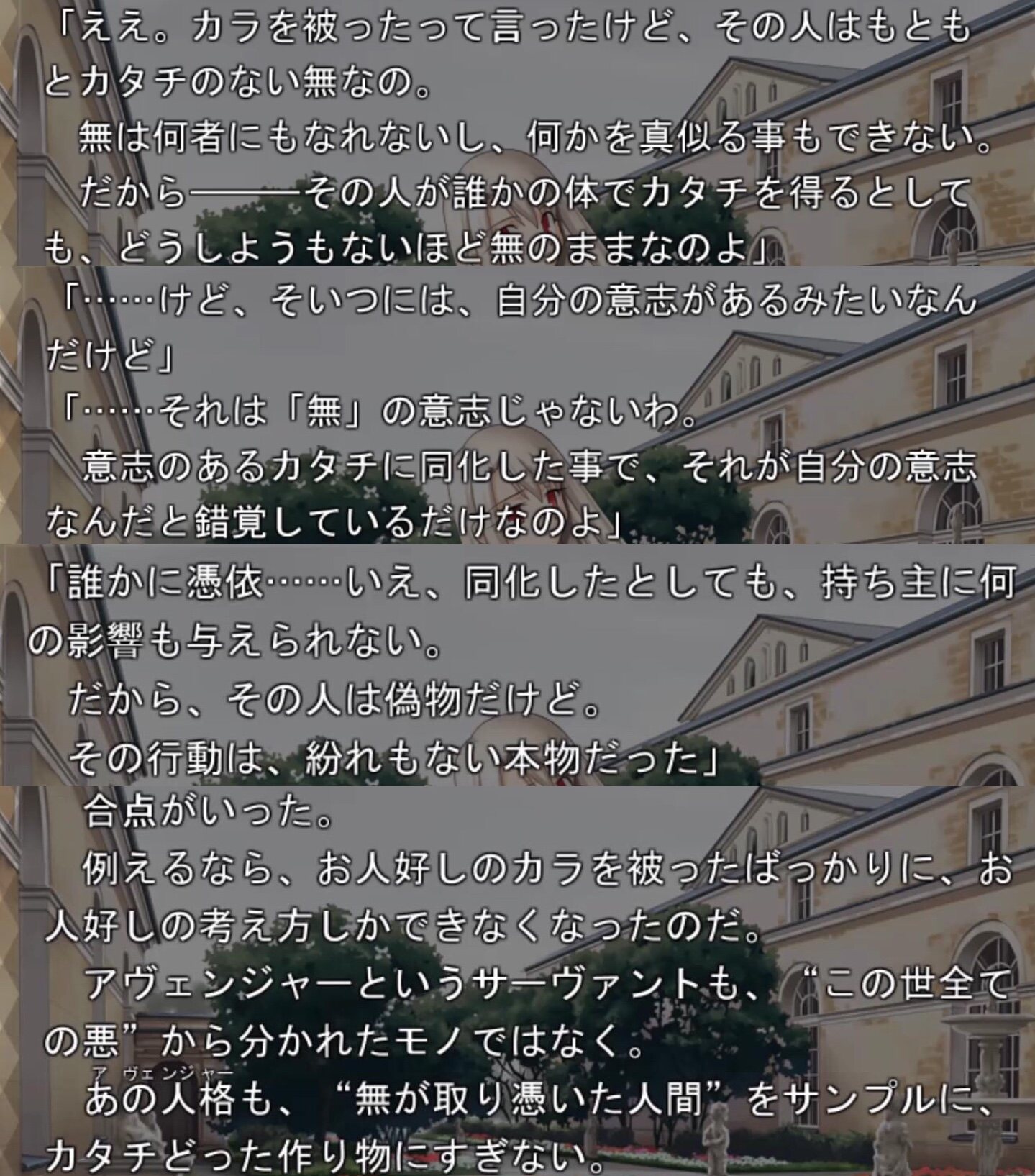 その前提の上で、士郎が偽者か本物かは、それぞれプレイヤーの感じ方で違う。今で言う擬似鯖なのだろうか
