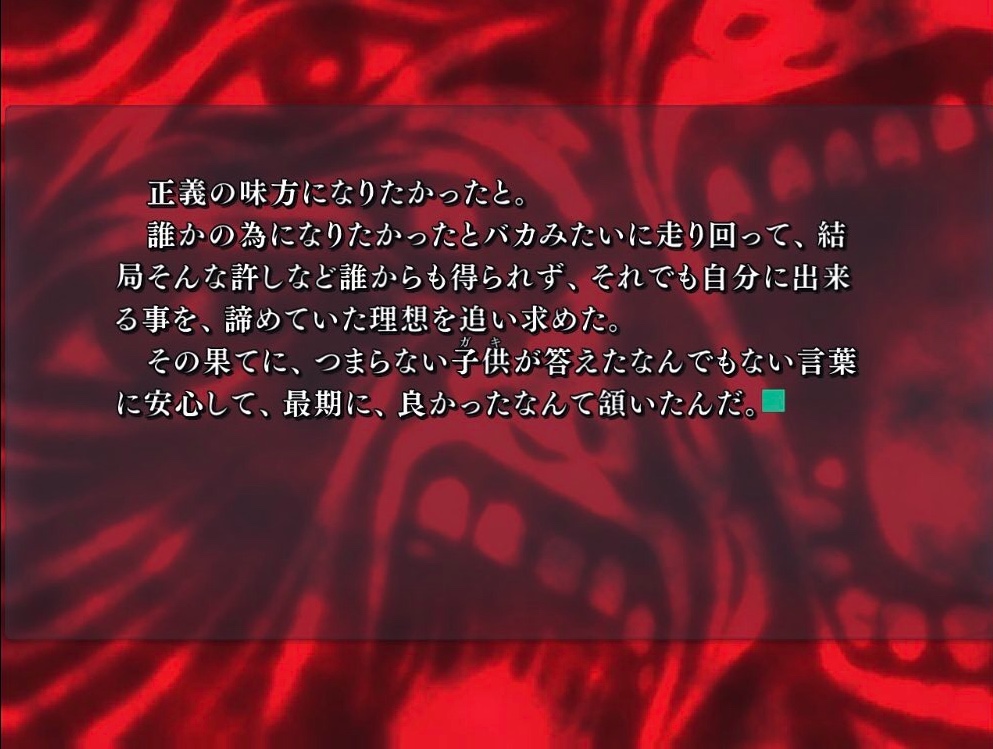両極端に嫌いな人は本当に嫌いになるし好きな人はすごく好きになる様に分かれるのも納得なキャラ顔の無いエロゲ主人公から顔の無い正義の味方へ