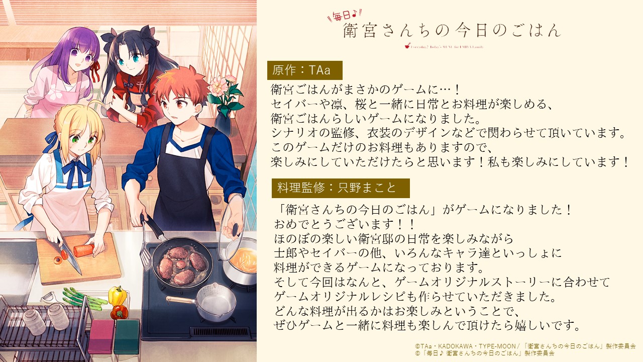 6月30日(日)開催のスペシャルイベント「衛宮さんちの今日の晩餐会」で販売するグッズ情報を解禁