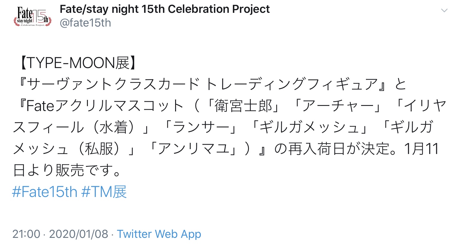 ここらへんない分プリヤ一択なんじゃFate/stay night-15年の軌跡-図録