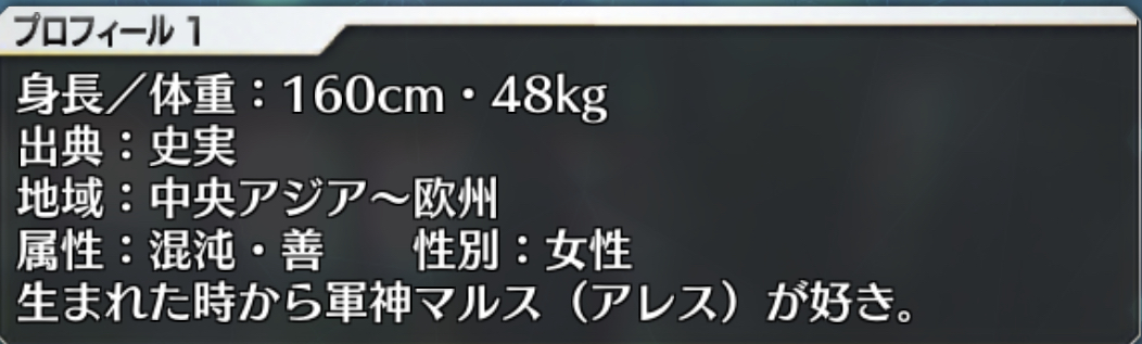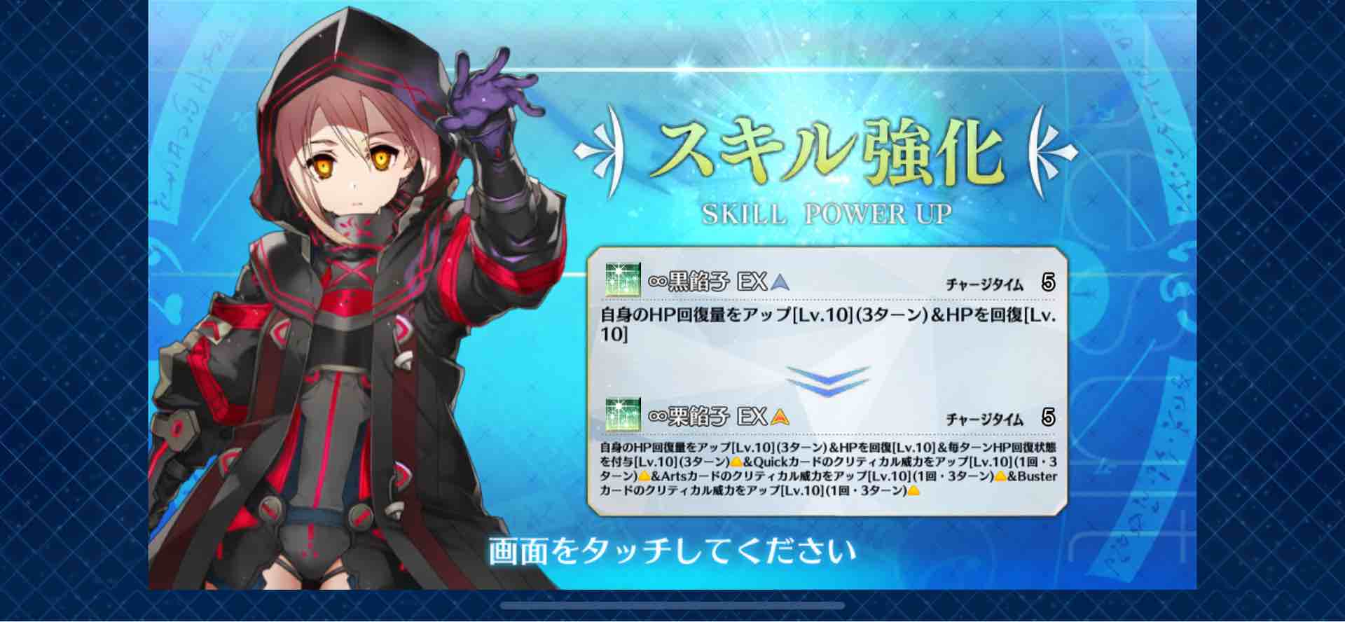 スキル1「語り手」敵単体に確立でチャージ減+自身に1TのAバフを付与。宝具威力に直結するスキル。優先的に育成なさい。チャー減は最大で100%まで上昇