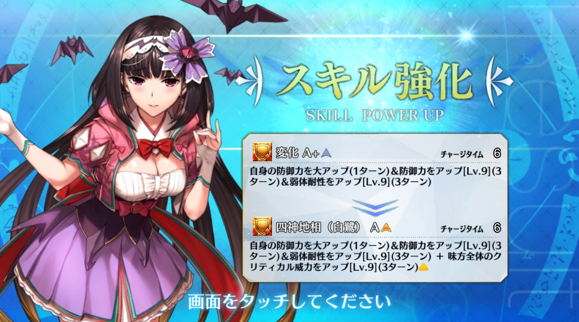 単独で2ターン目以降にも回復量upの恩恵が受けれるってだけで相当な強化よねおっきーの全体3t50%クリバフってチートスキルやんけ…えぇ…(困惑)